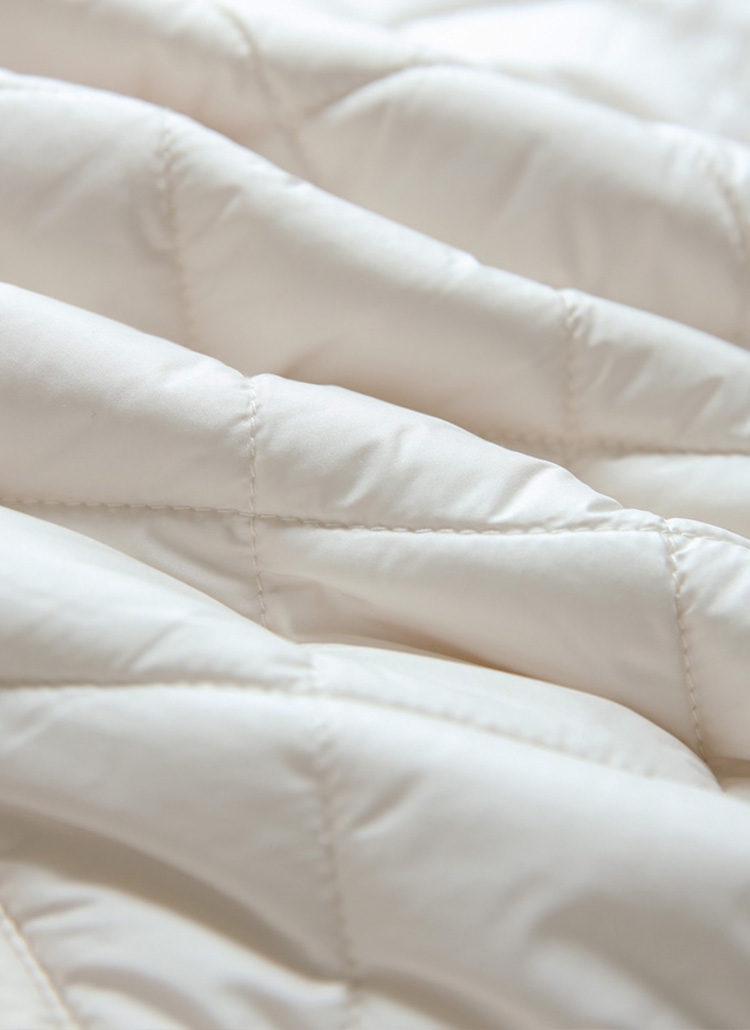 가벼운 웰론 충전재와 니트 배색으로 따뜻하고 스타일리시한