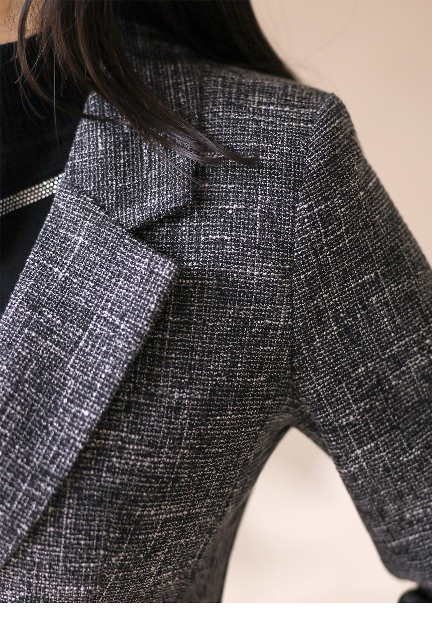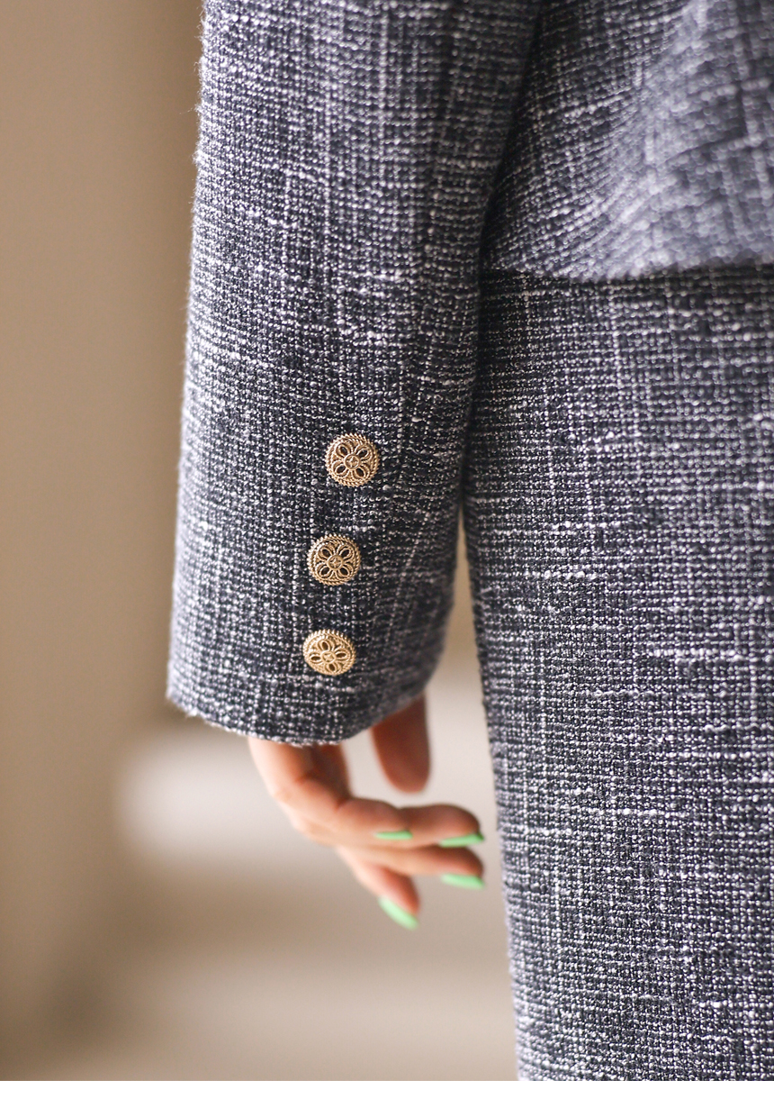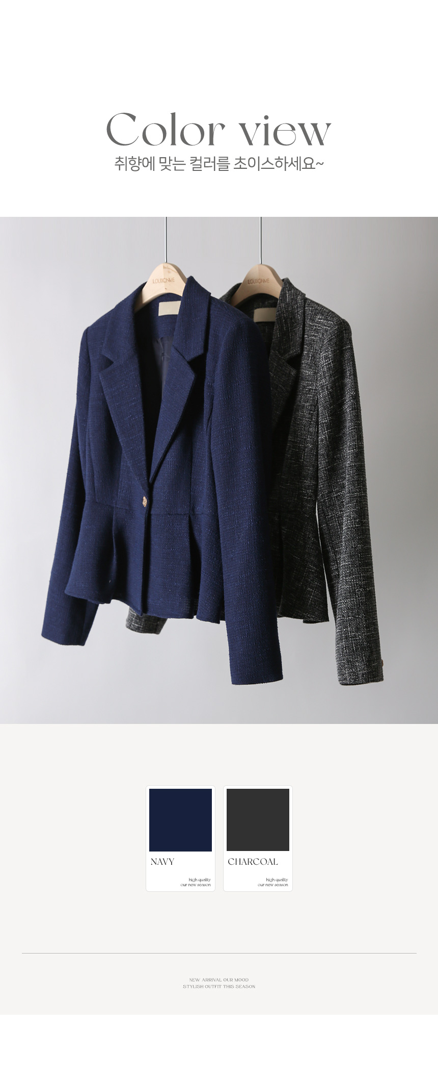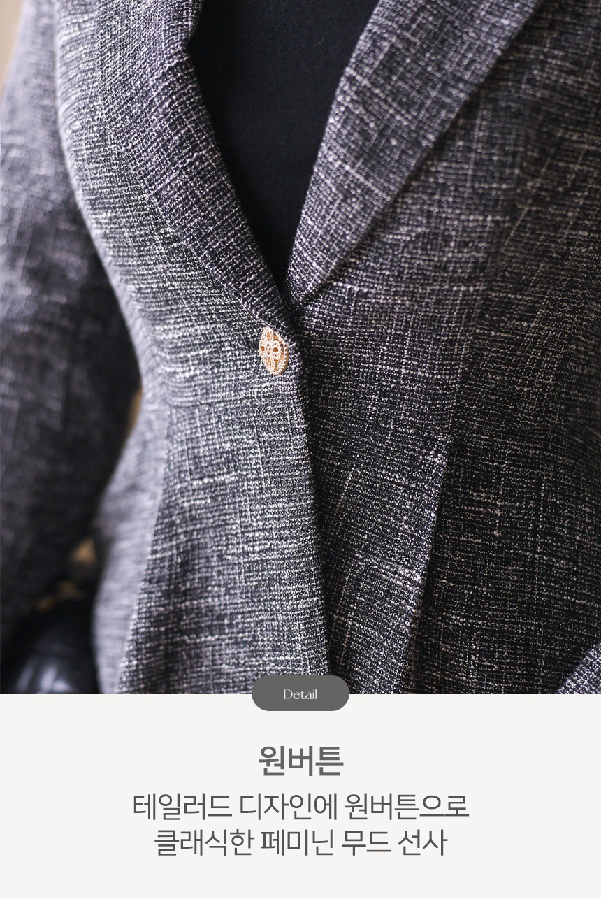 클래식한 테일러드 카라와 원버튼 디자인이 만나