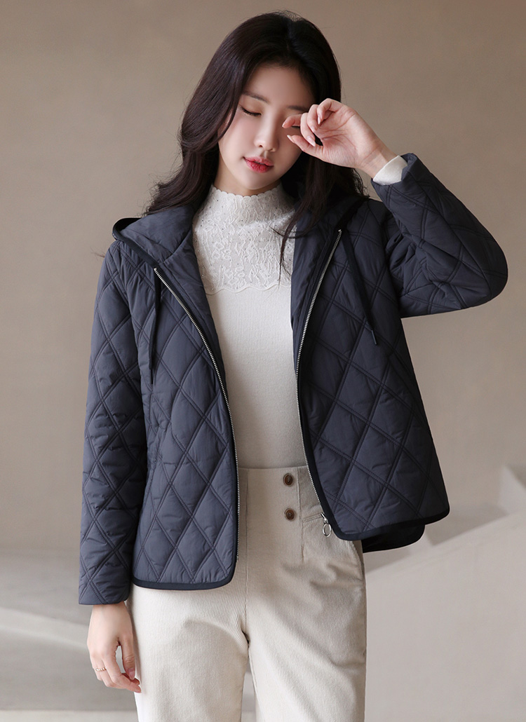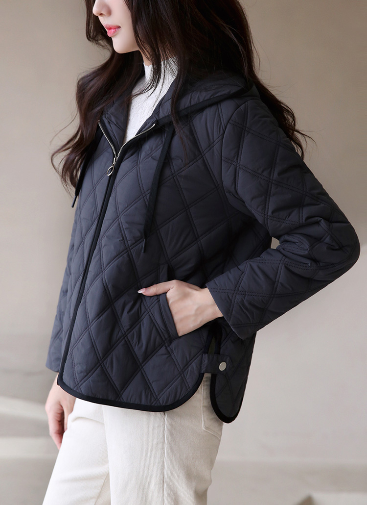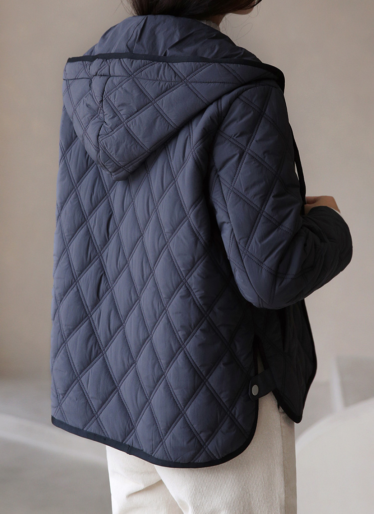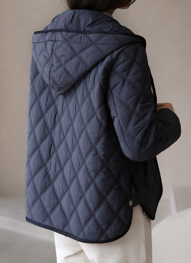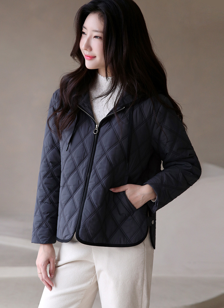 ラウンドヘム フード付き キルティングジャケット jp42607