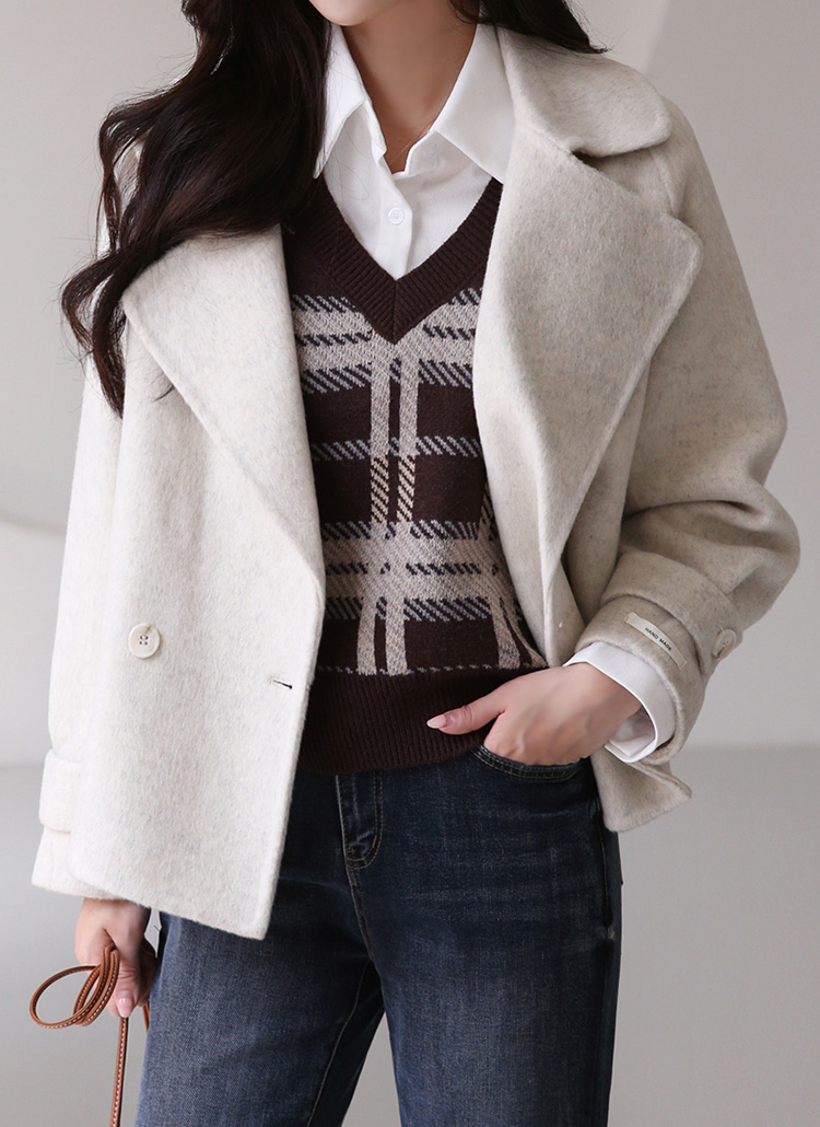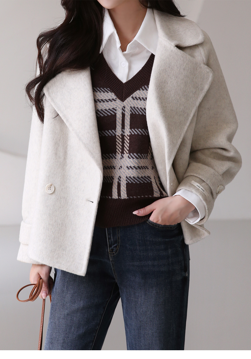 ウールテーラードカラーショートハンドメイドコート ct42610
