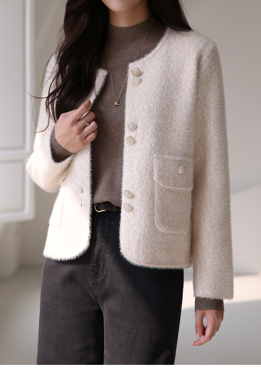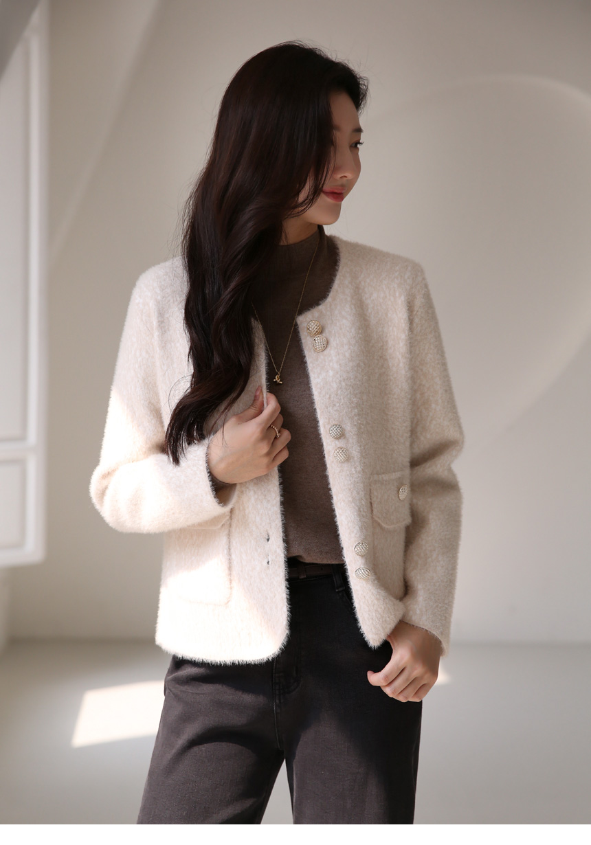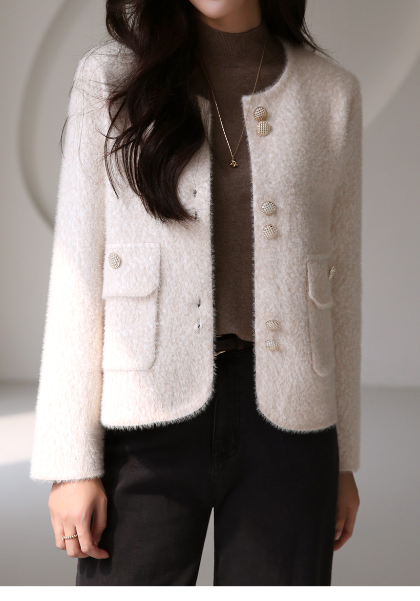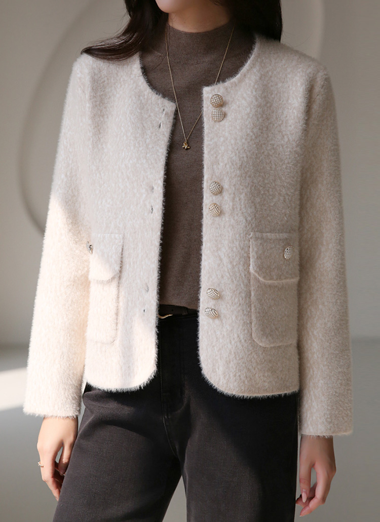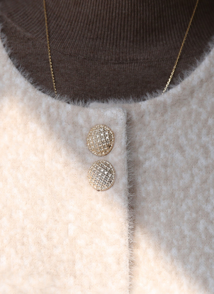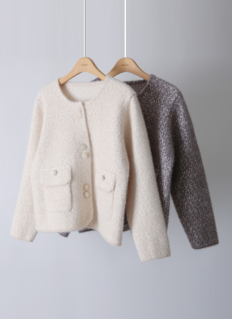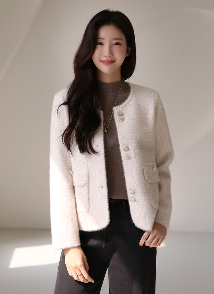 ゴールドボタン ノーカラーヘアリーニットジャケット jk42637