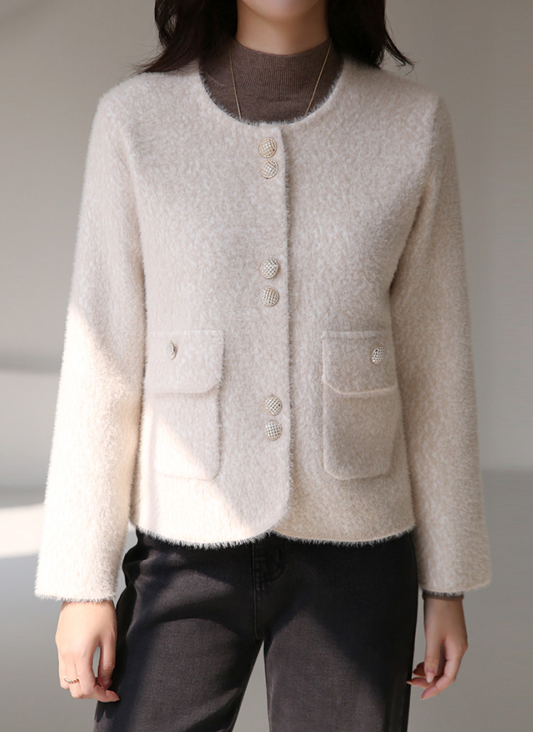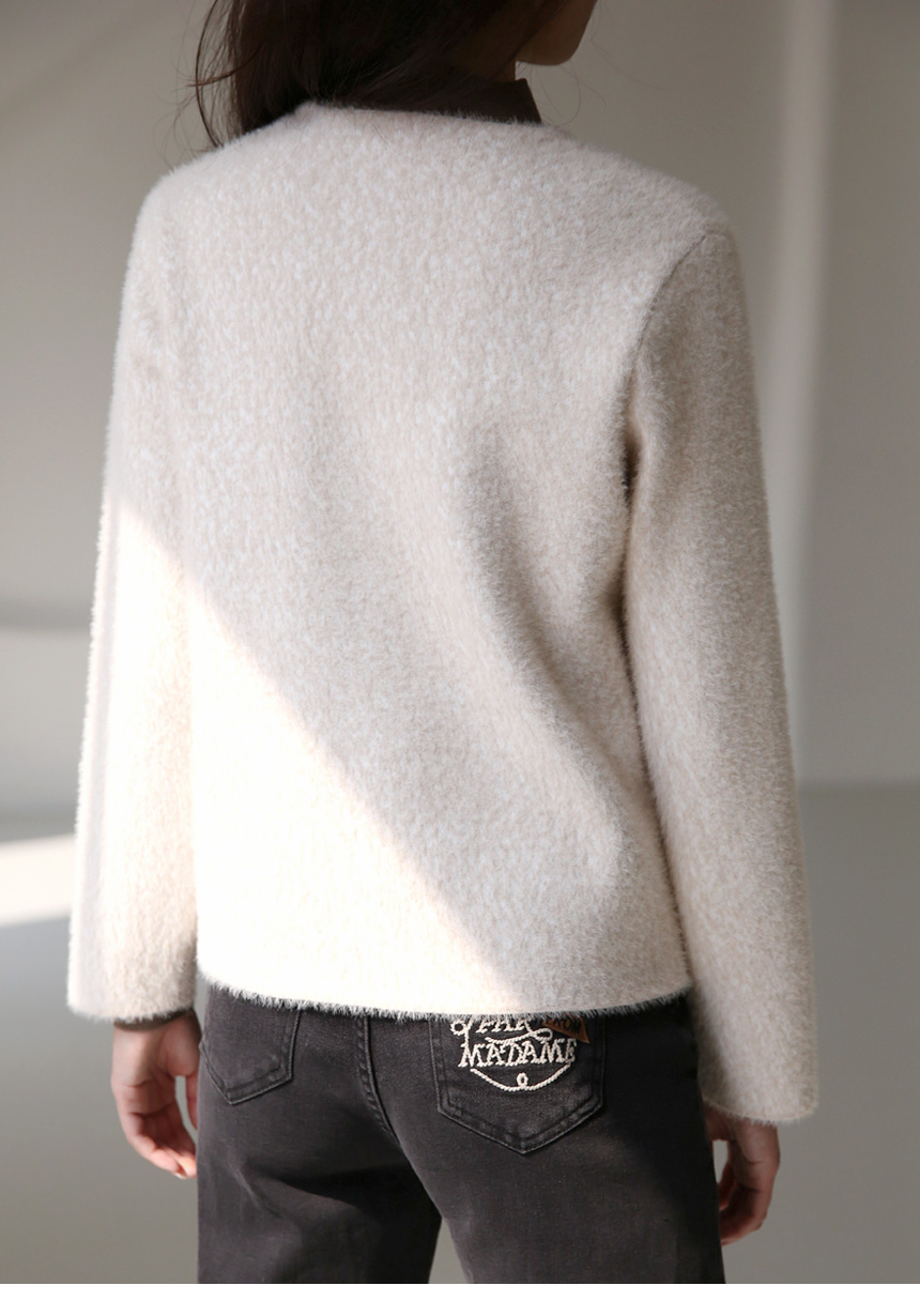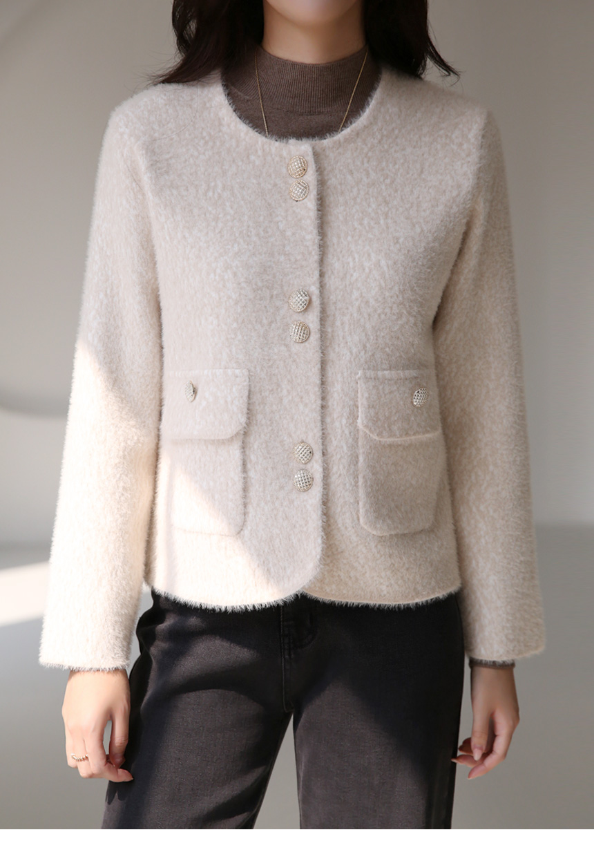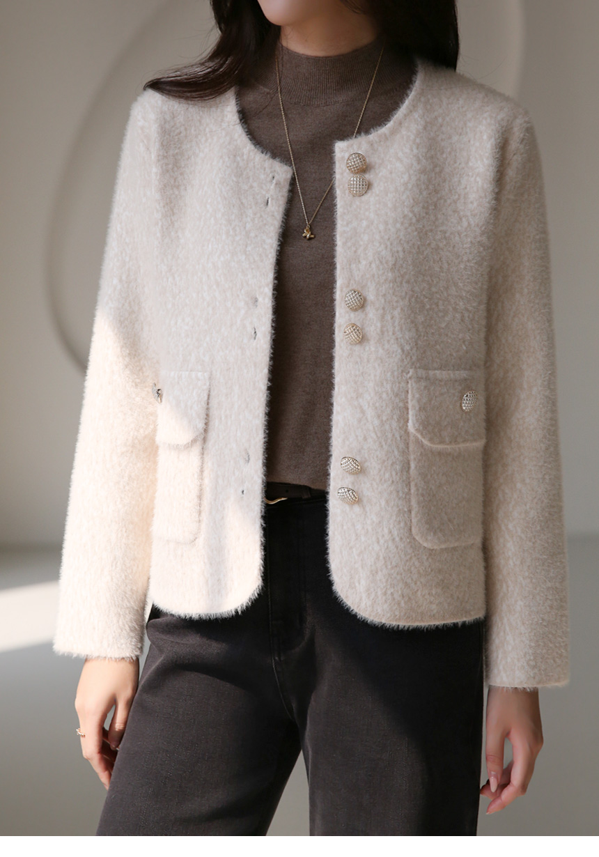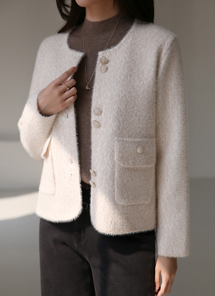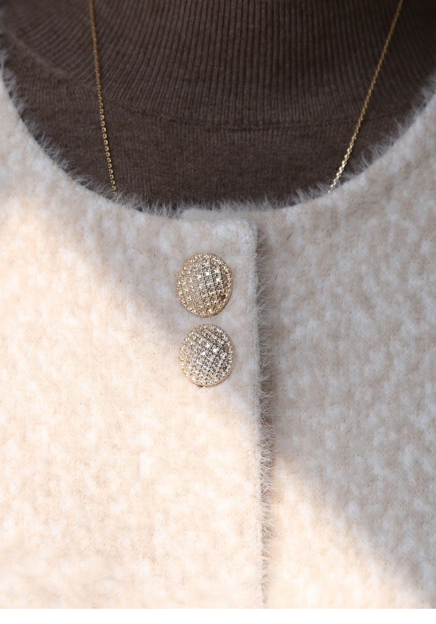 ゴールドボタン ノーカラーヘアリーニットジャケット jk42637