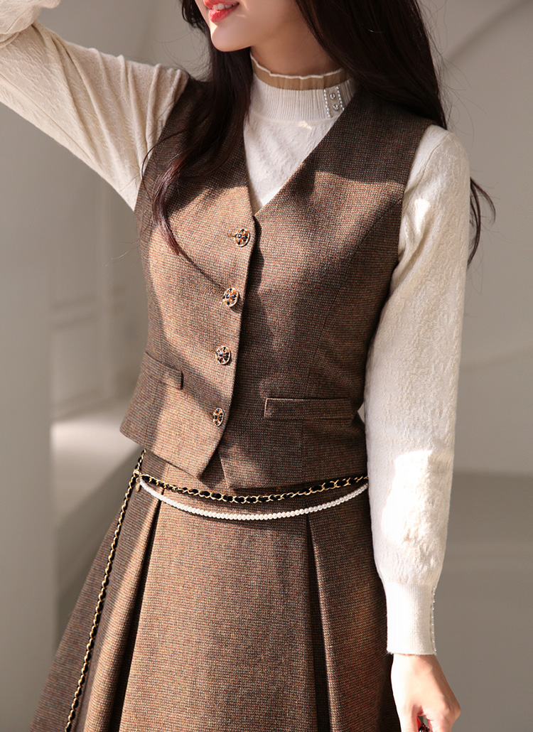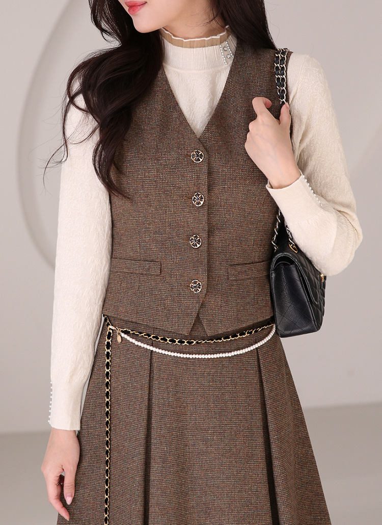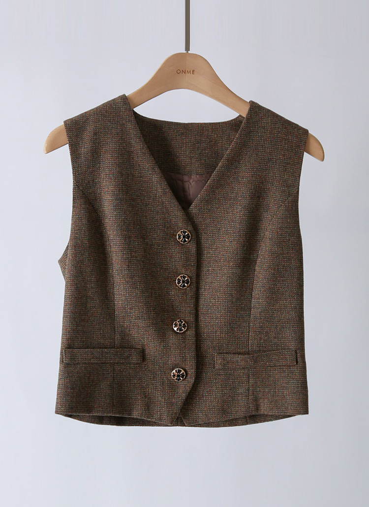 [LouisAngel] ウールブレンド ゴールドボタン Vネックベスト vt42655