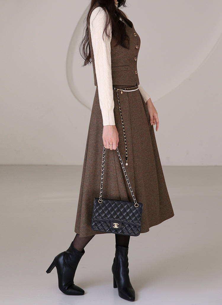 [LouisAngel] ウールブレンド タックプリーツスカートsk42658