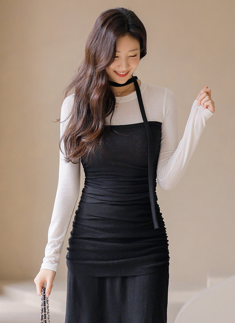 뷔스티에 라인으로 배색된 부분은 이중으로 되어있으며