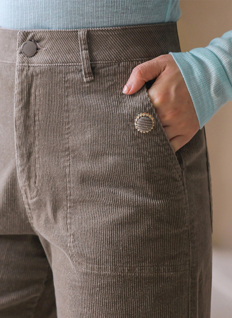 심플한 아웃포켓과 싸개 버튼으로 포인트를 준 세미 와이드 일자 팬츠에요 :)
