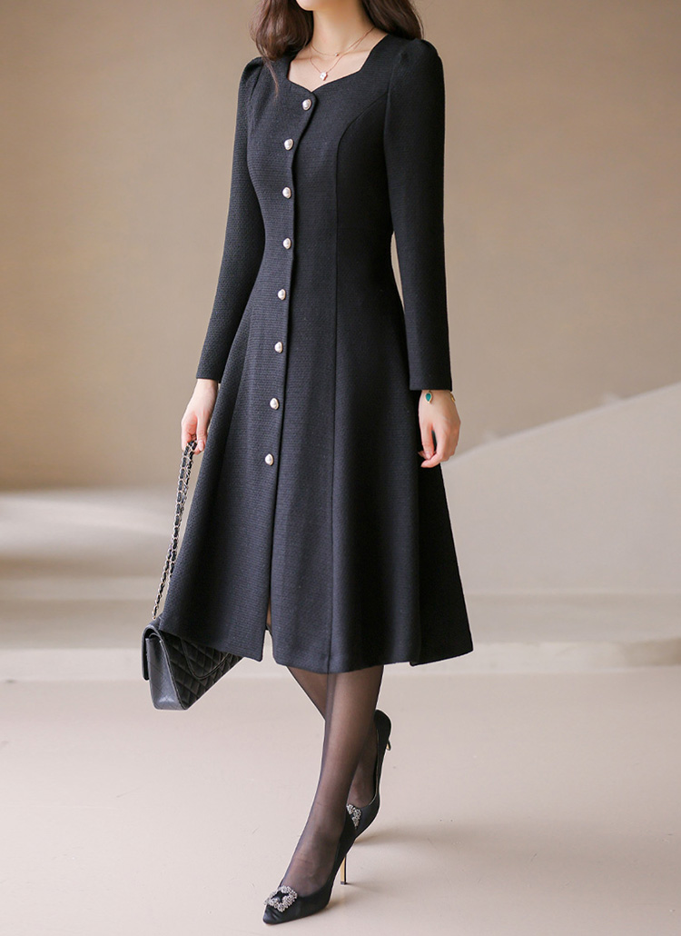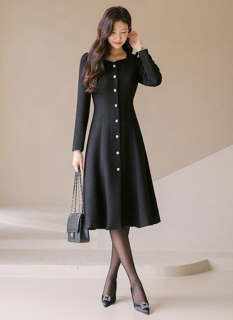슬림한 허리 라인과 부드럽게 퍼지는 A라인 실루엣으로