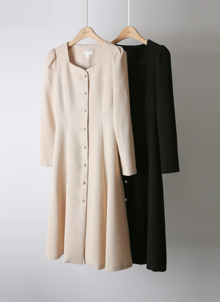 ハートネック パールボタン スリムフレアワンピース op42730