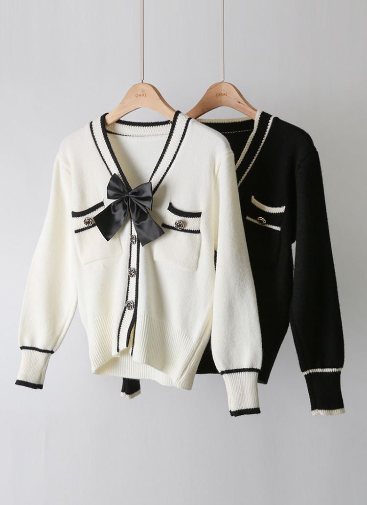 リボン付き 2Way バイカラーVネックニットカーディガン cd42739