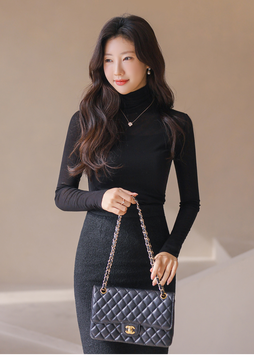 【8色展開】ウールブレンドタートルネックリブニットnt42748