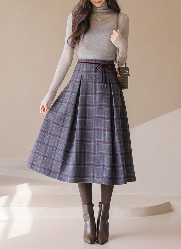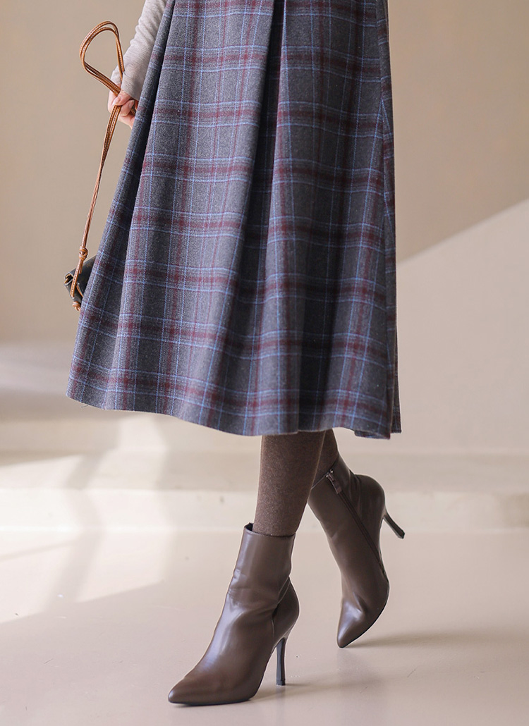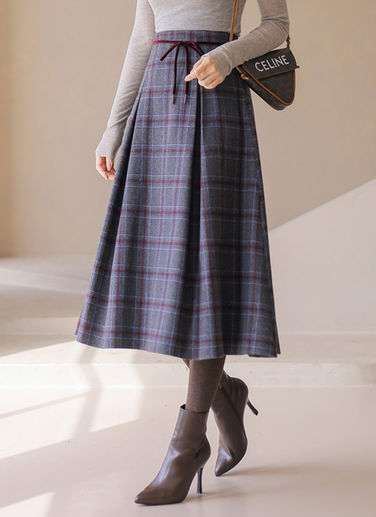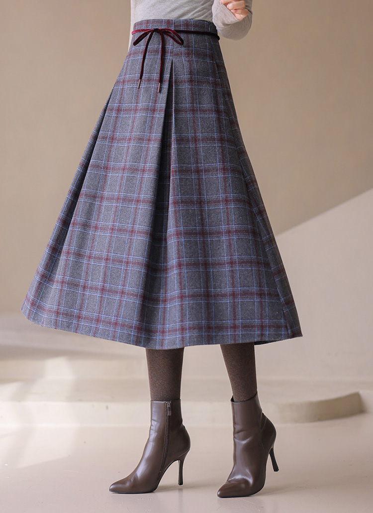 [LouisAngel] ベルベットリオンベルト付き チェック柄 ウールプリーツロングスカートsk42754