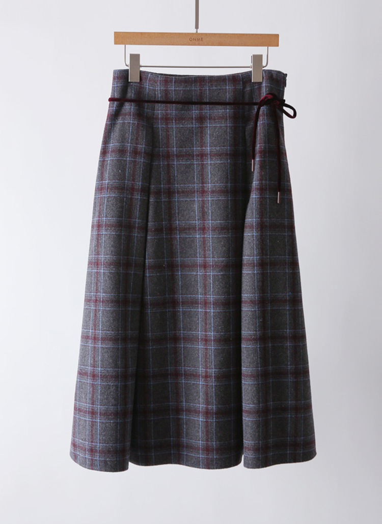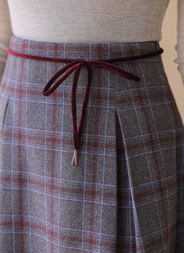 [LouisAngel] ベルベットリオンベルト付き チェック柄 ウールプリーツロングスカートsk42754