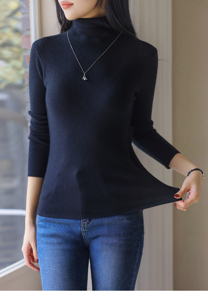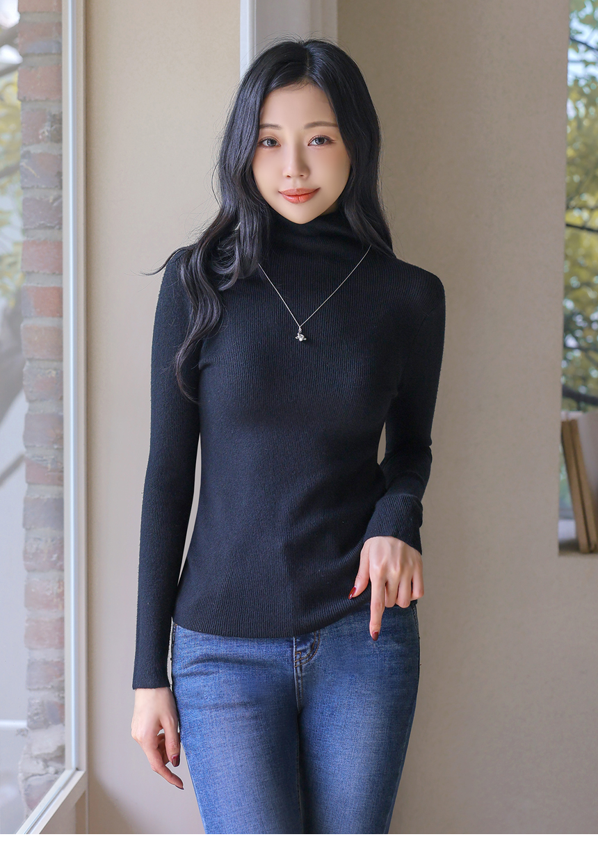 비스코스 혼방의 슬림 골지 폴라 니트에요 :)