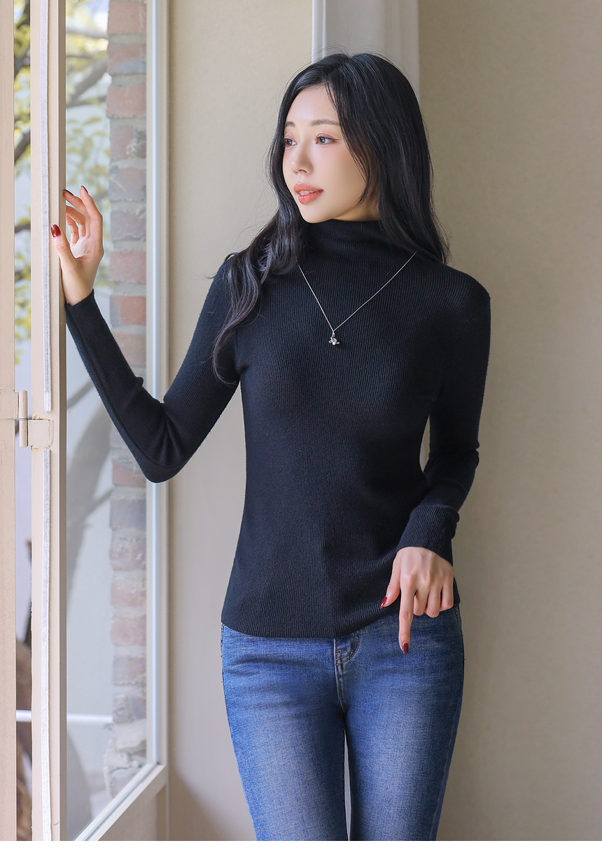폴라 넥으로 따뜻하면서도 세련된 무드를 연출해주며