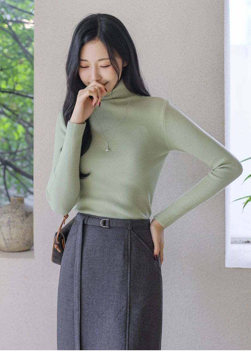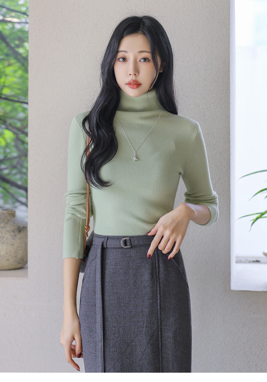 【8色展開】[THE ONME] ビスコースタートルネックリブニット42760