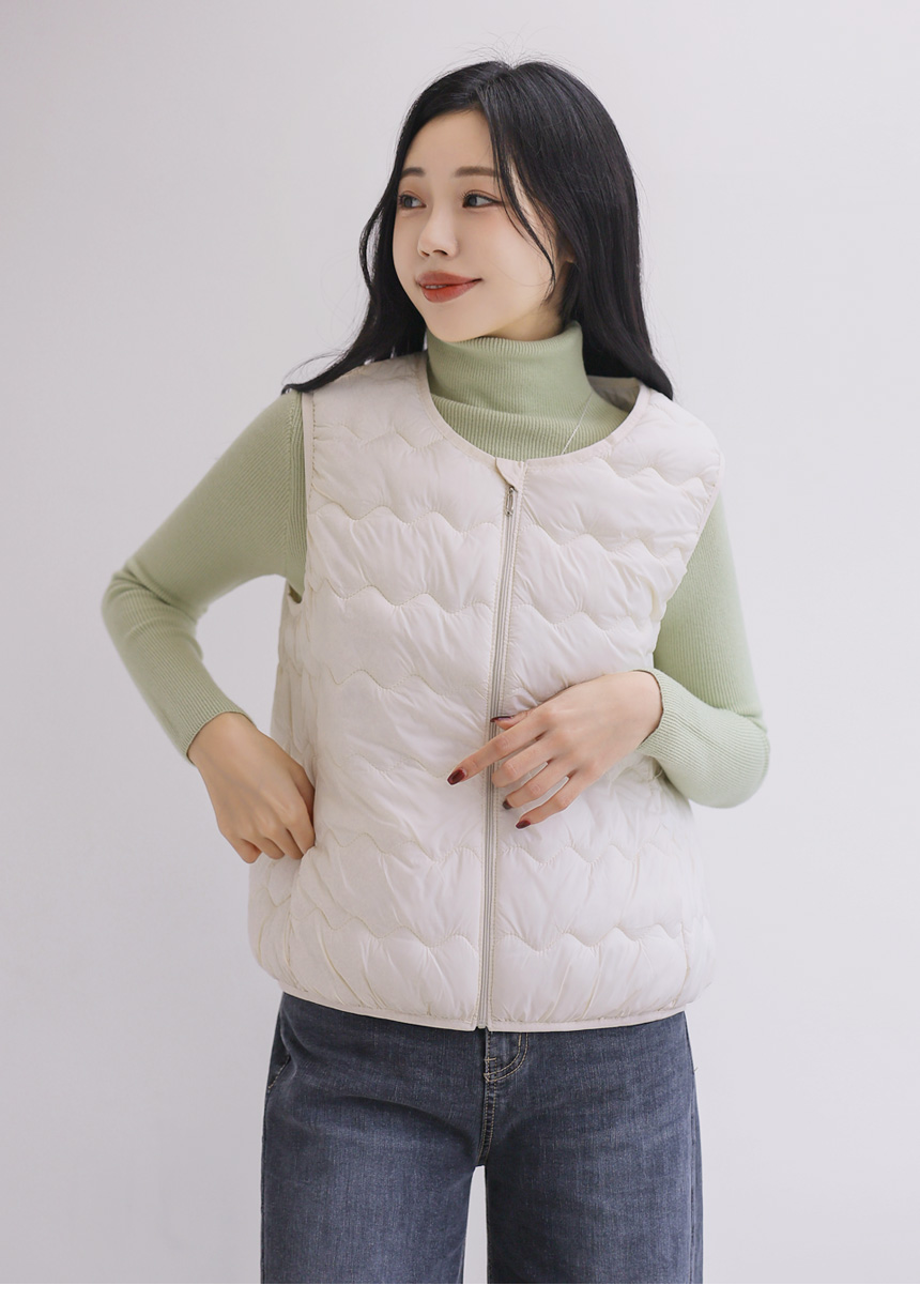 골지 패턴으로 바디라인을 슬림하고 페미닌하게 연출해주며