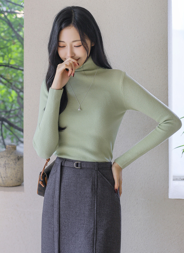 【8色展開】[THE ONME] ビスコースタートルネックリブニットnt42760