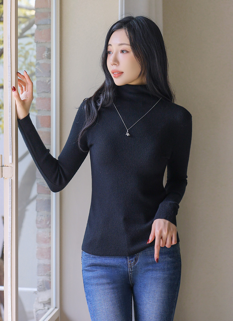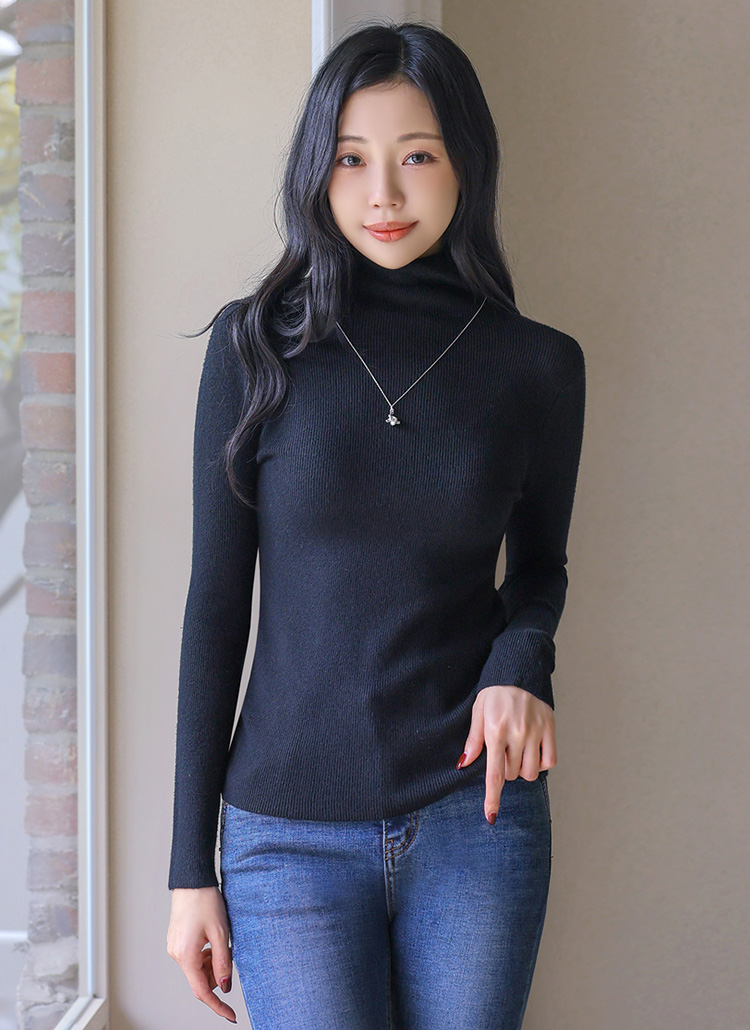 비스코스 혼방의 슬림 골지 폴라 니트에요 :)