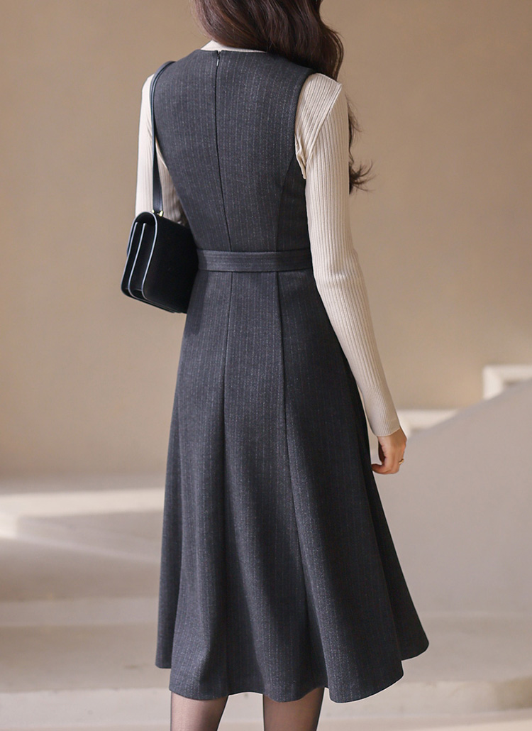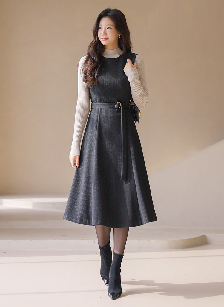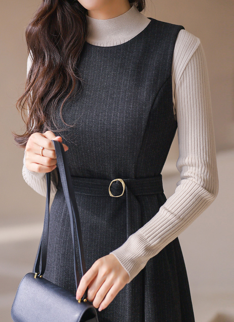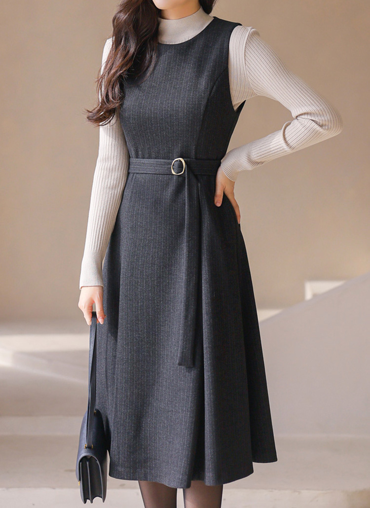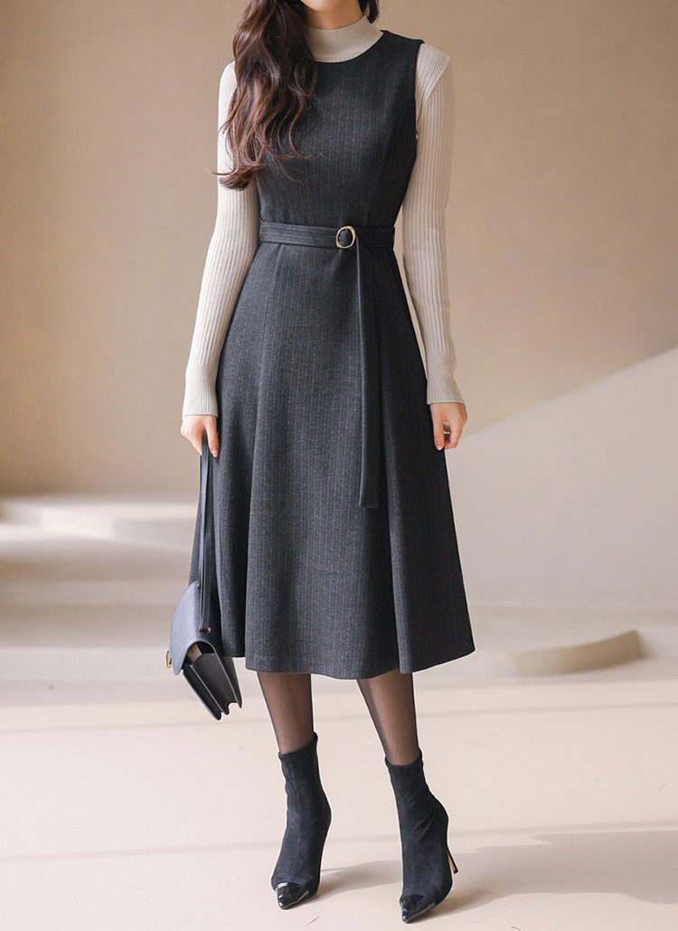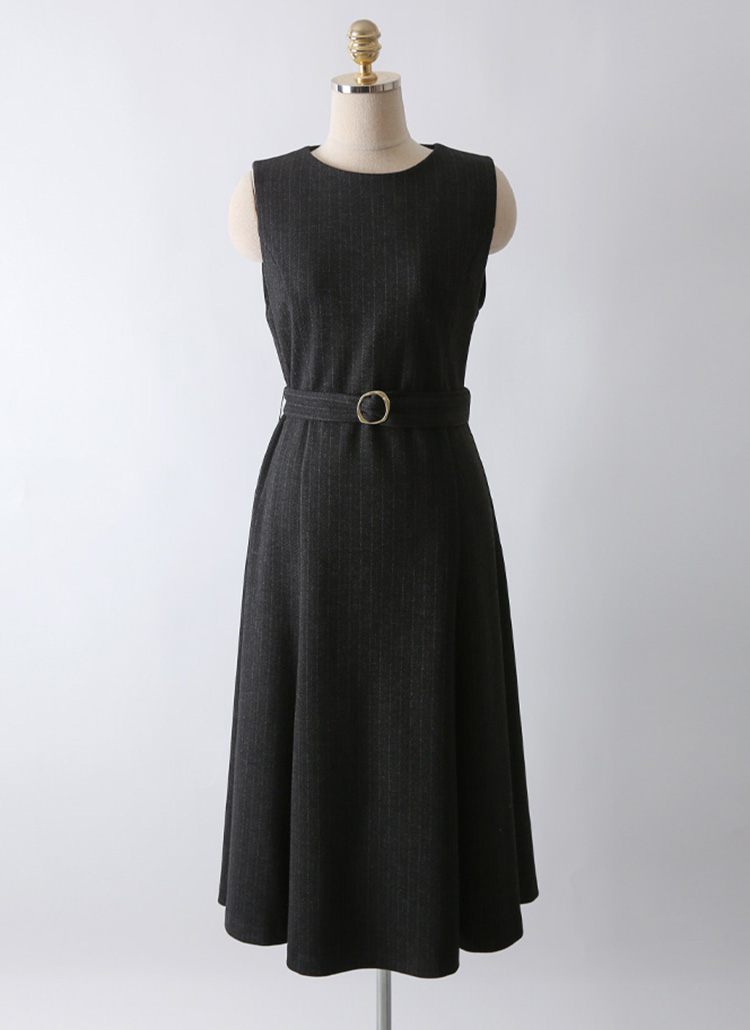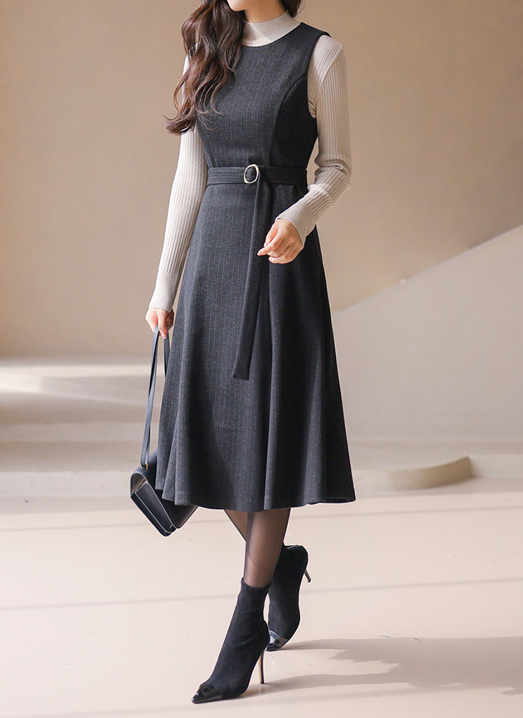 [LouisAngel] ピンストライプベルト付きフレアジャンパースカートop42766