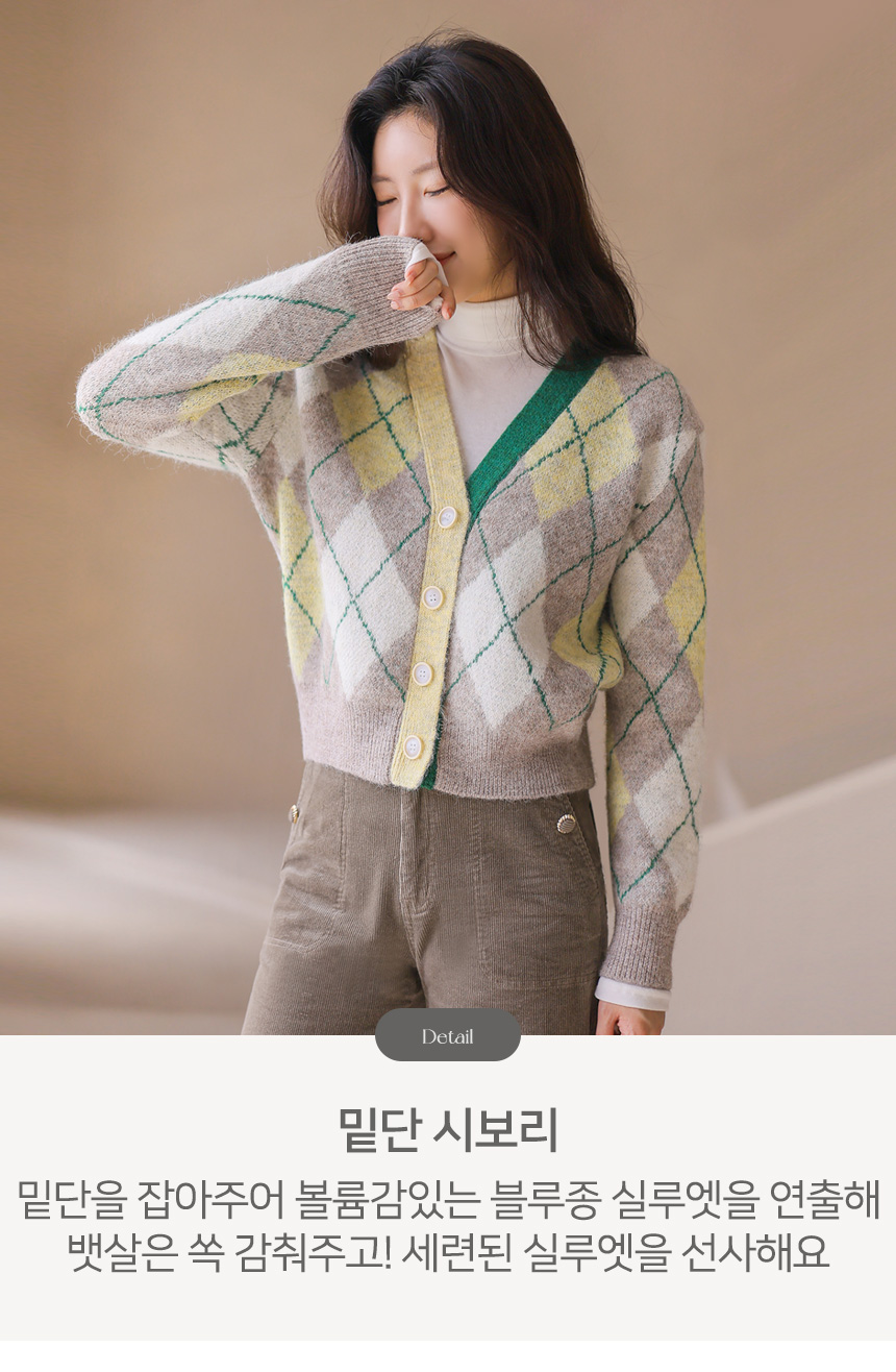 산뜻한 아가일 체크 배색으로 발랄한 무드를 연출해주는