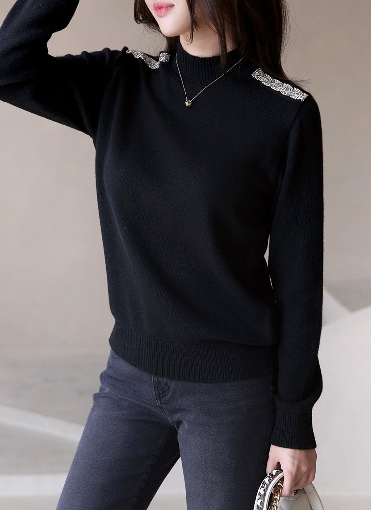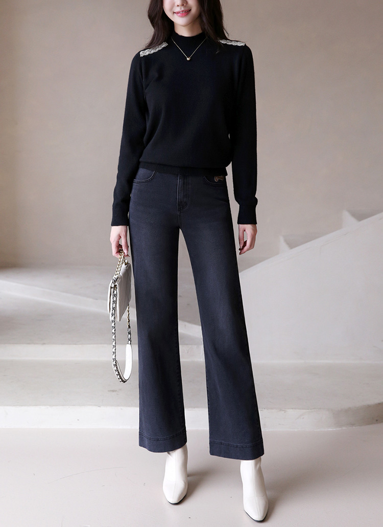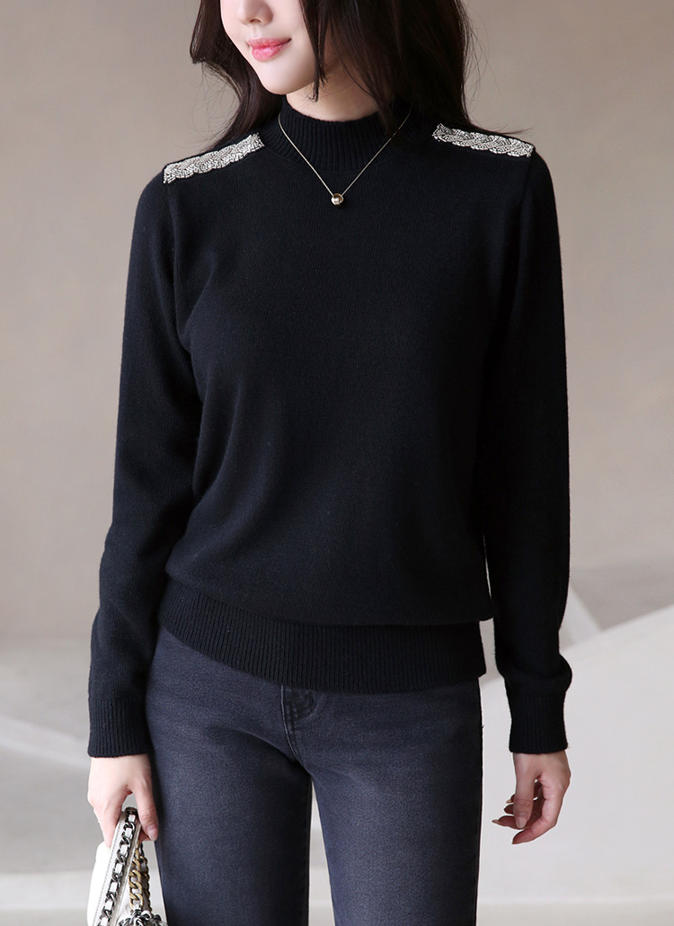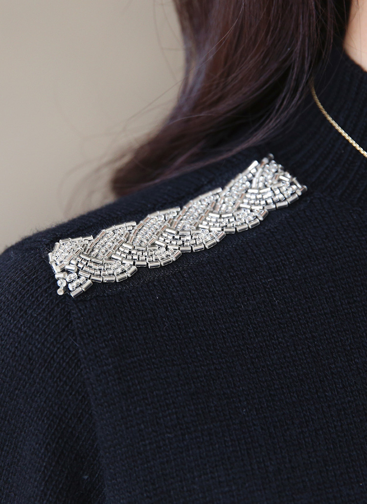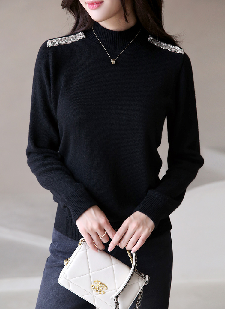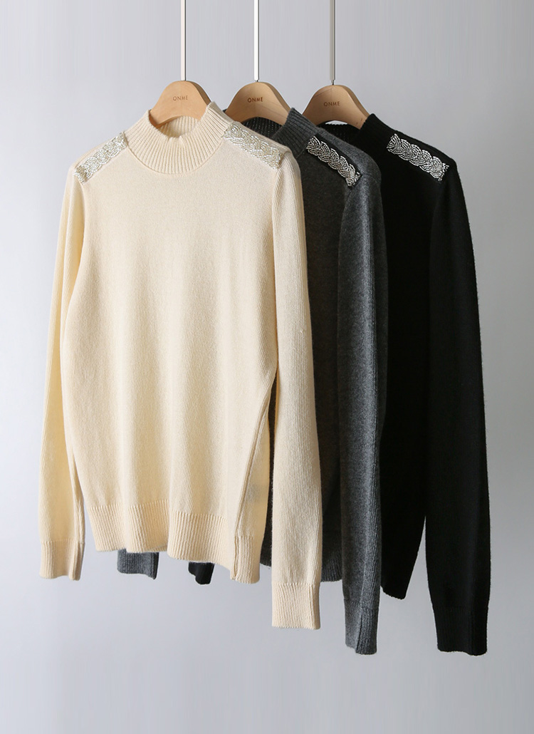 ショルダービーズ付きウールカシミヤハイネックニット nt42775