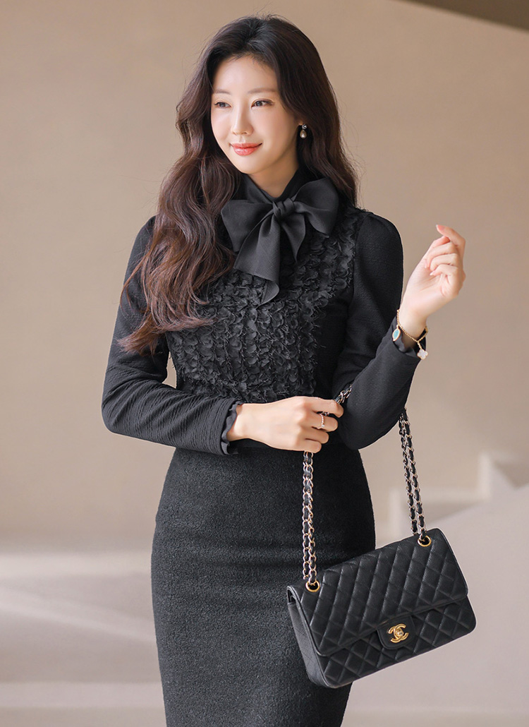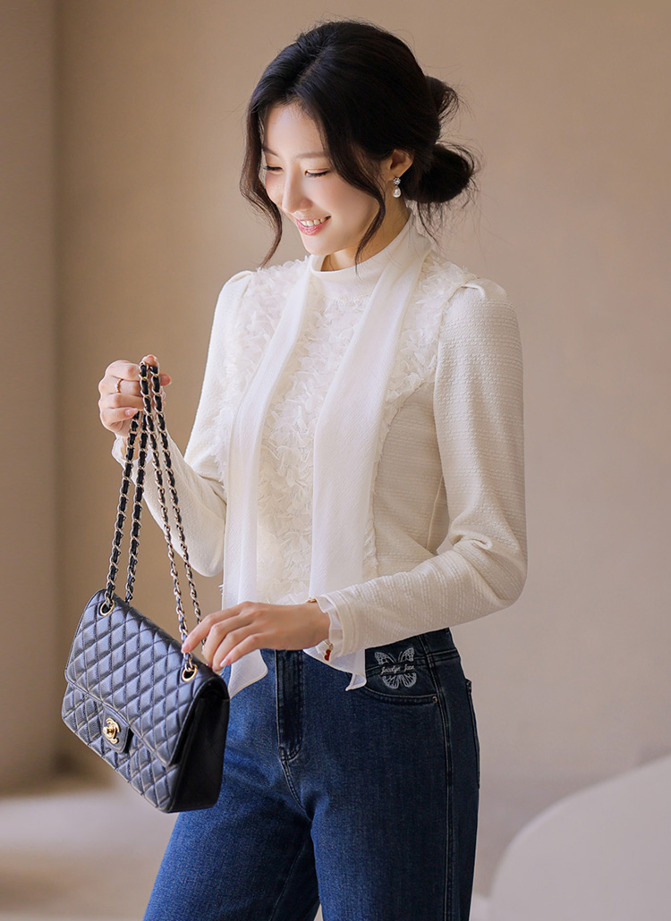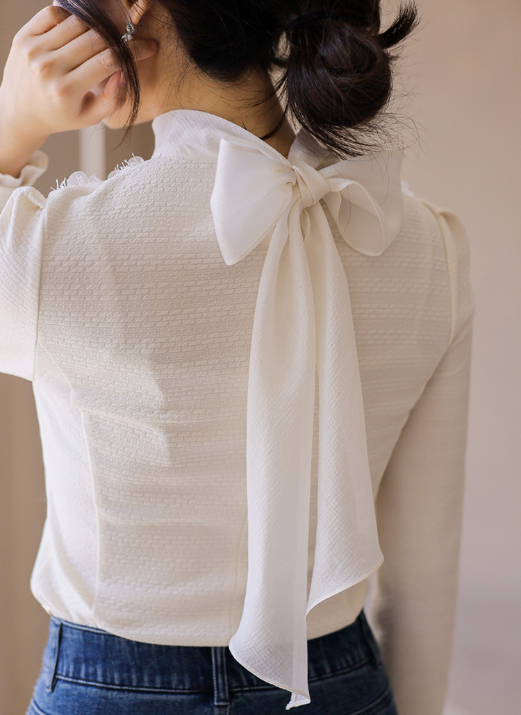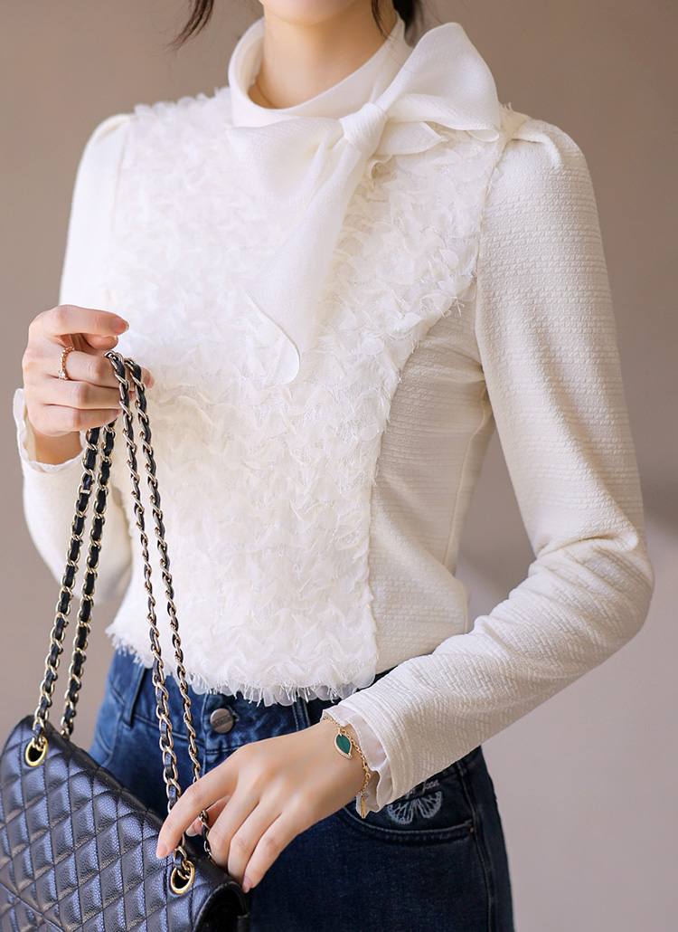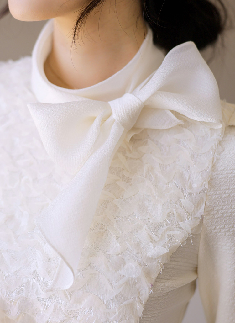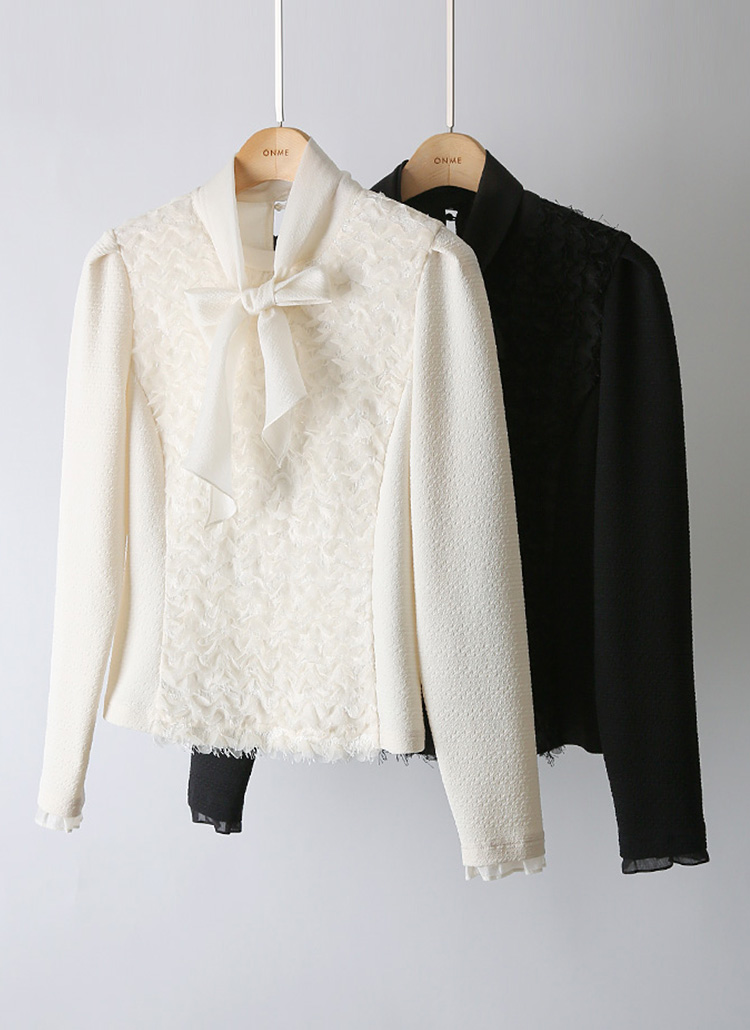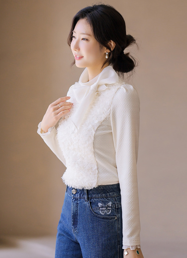 [LouisAngel] リボンタイ フリルジャガードレースプルオーバー bl42811