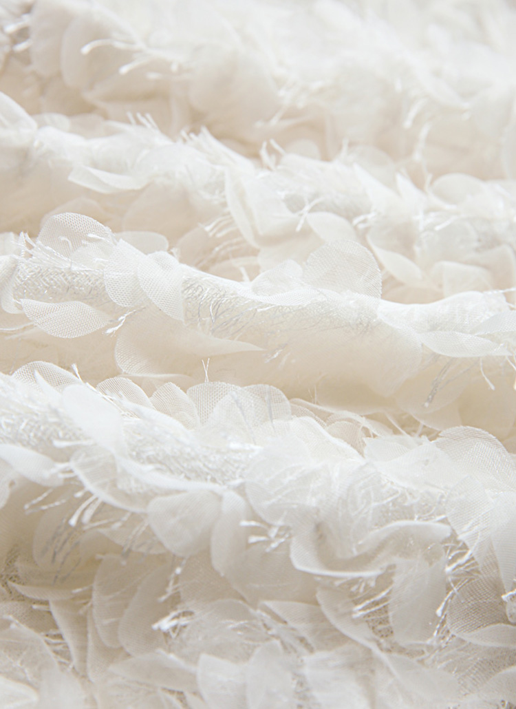 한가득 피어난 꽃잎처럼 표현된 쉬폰 쟈가드 소재를 배색하여