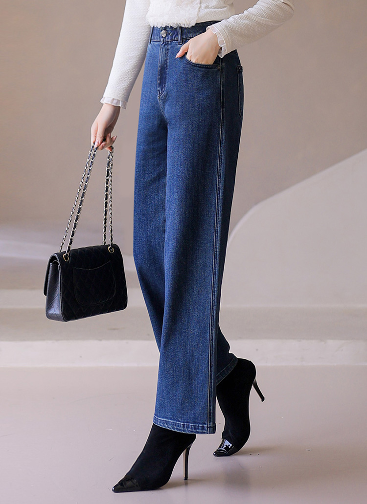 스타일리시하게 룩의 포인트가 되어주는 매력만점 세미 와이드 데님 팬츠에요~