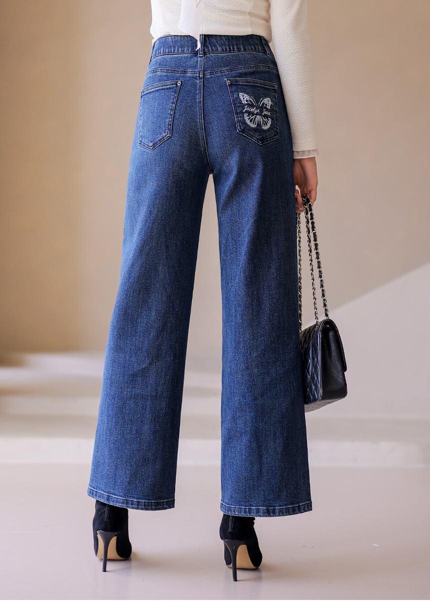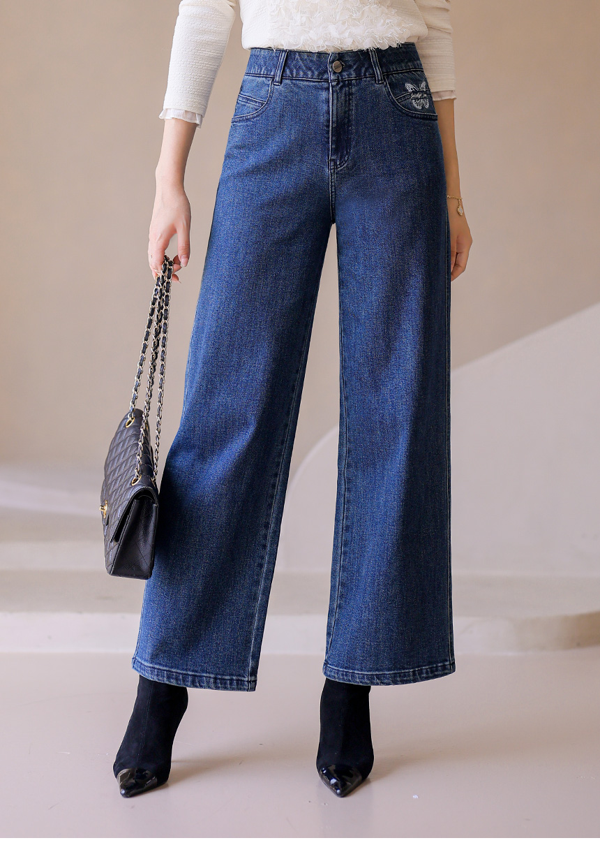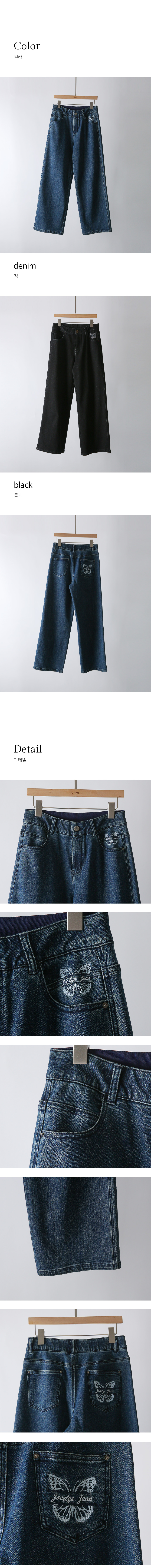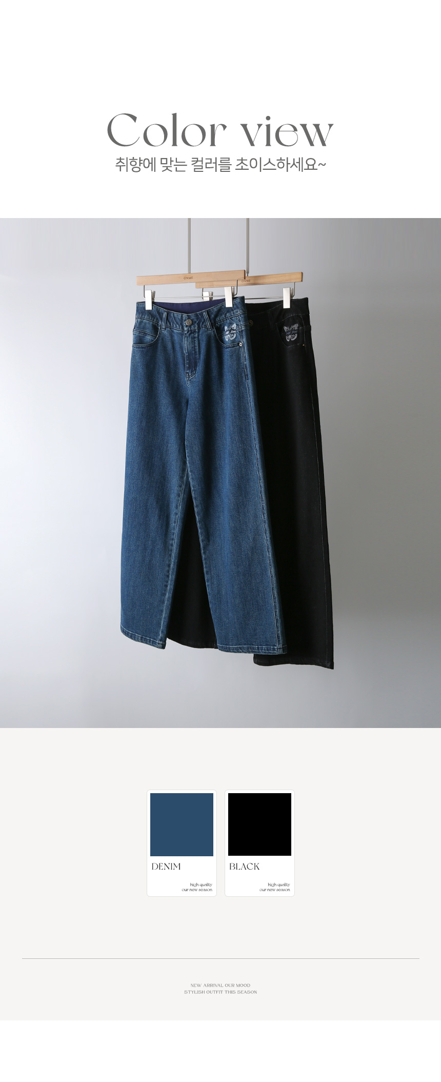 ウエストゴム バタフライ刺繍 ワイドデニムパンツ pt42817