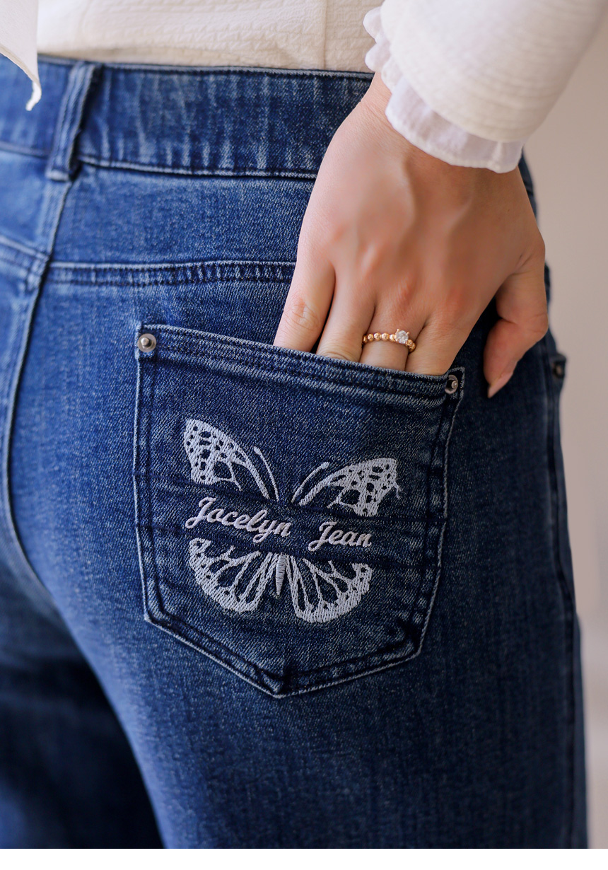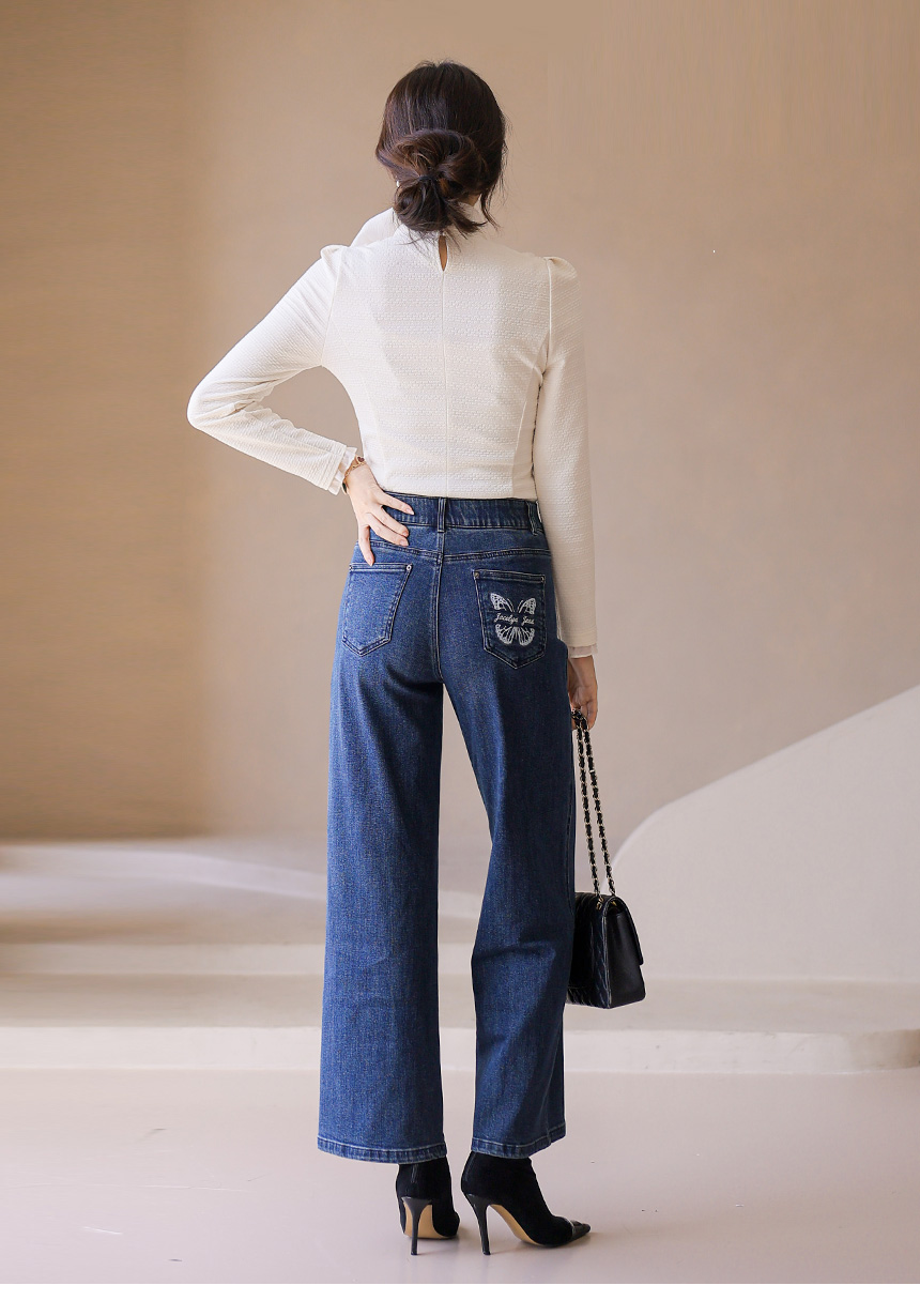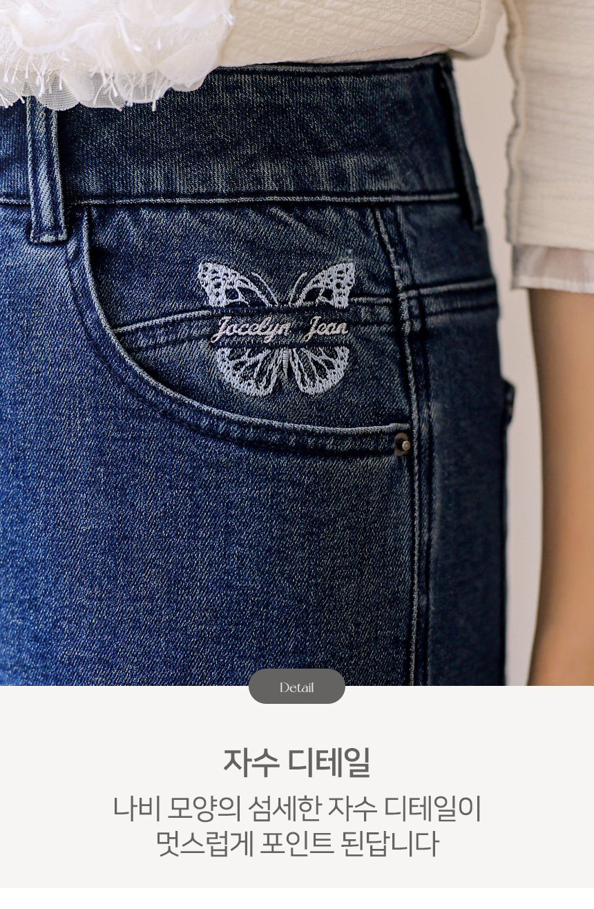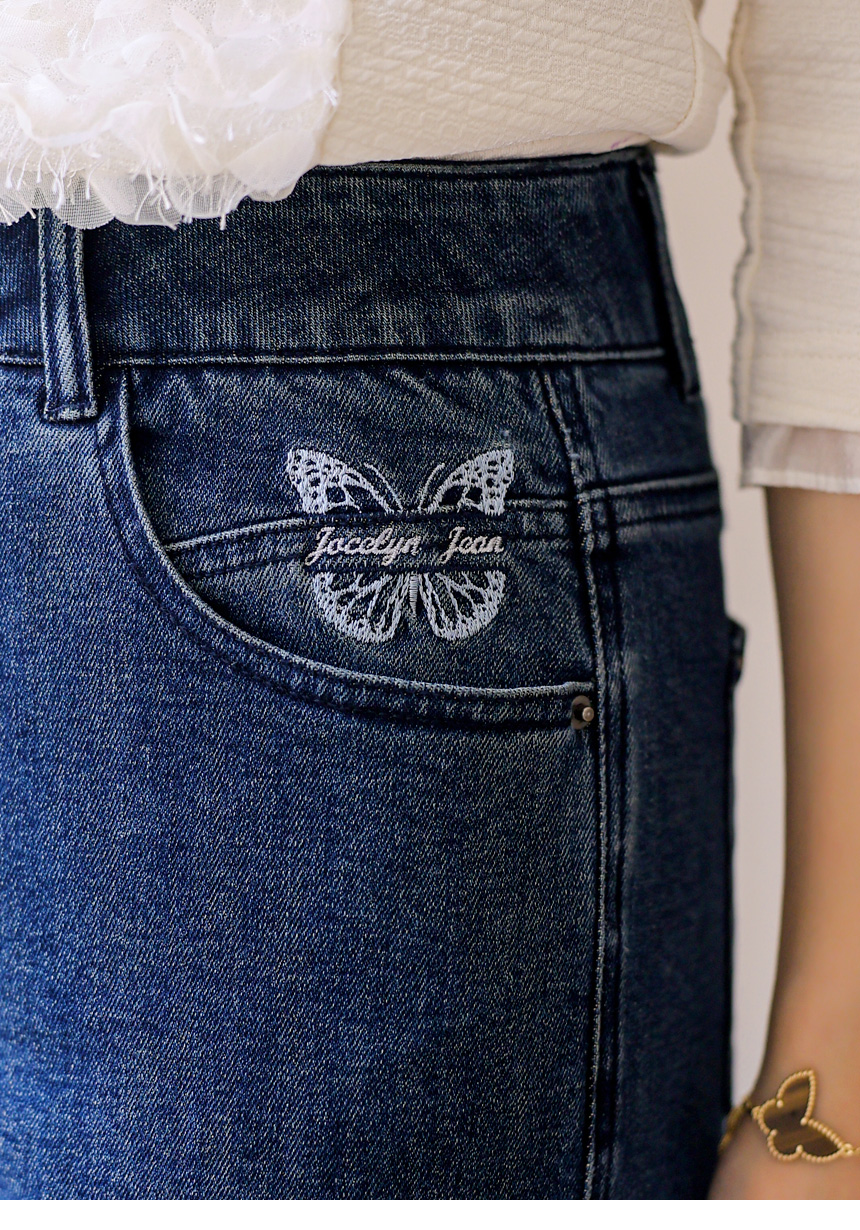 ウエストゴム バタフライ刺繍 ワイドデニムパンツ pt42817