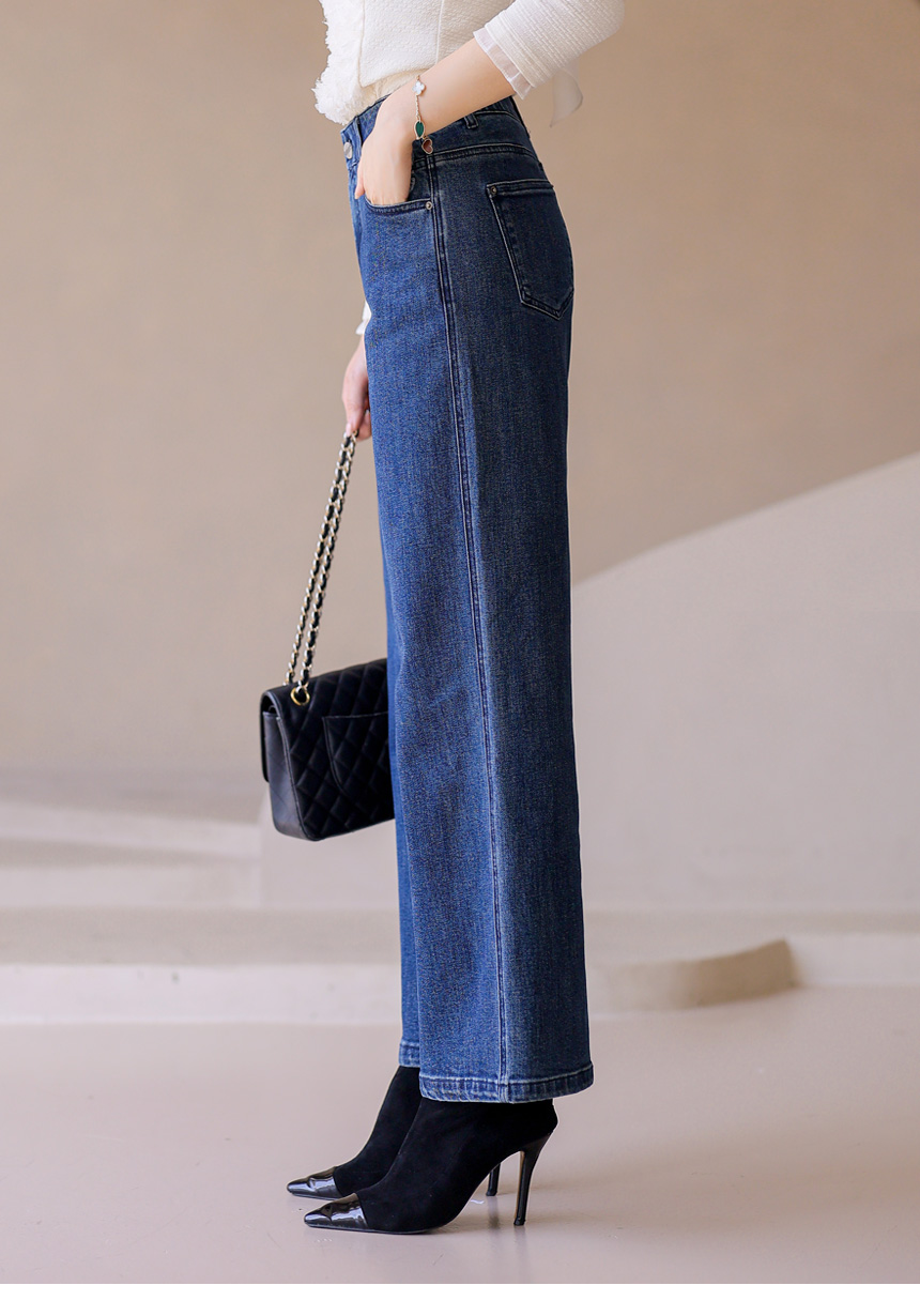 스타일리시하게 룩의 포인트가 되어주는 매력만점 세미 와이드 데님 팬츠에요~