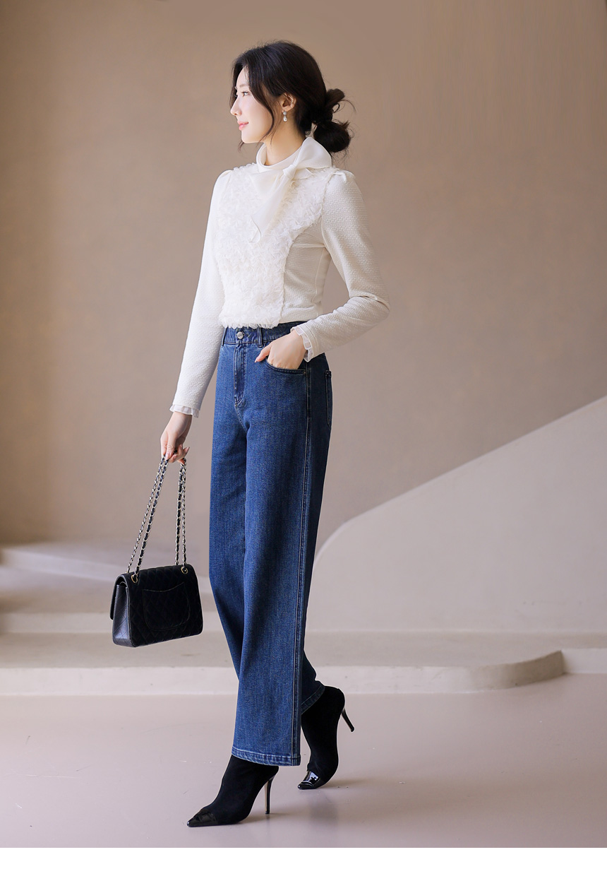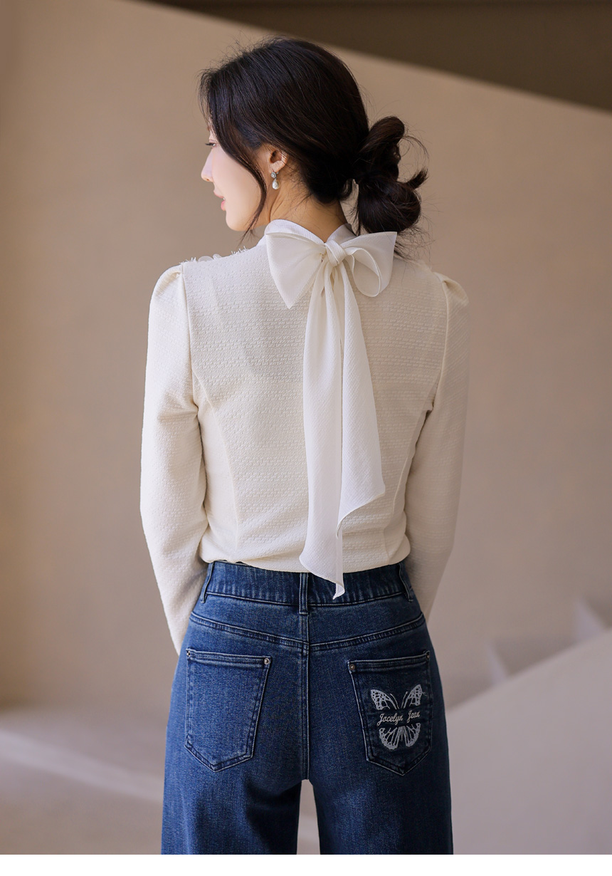 • [LouisAngel] リボンタイ フリルジャガードレースプルオーバー bl42811