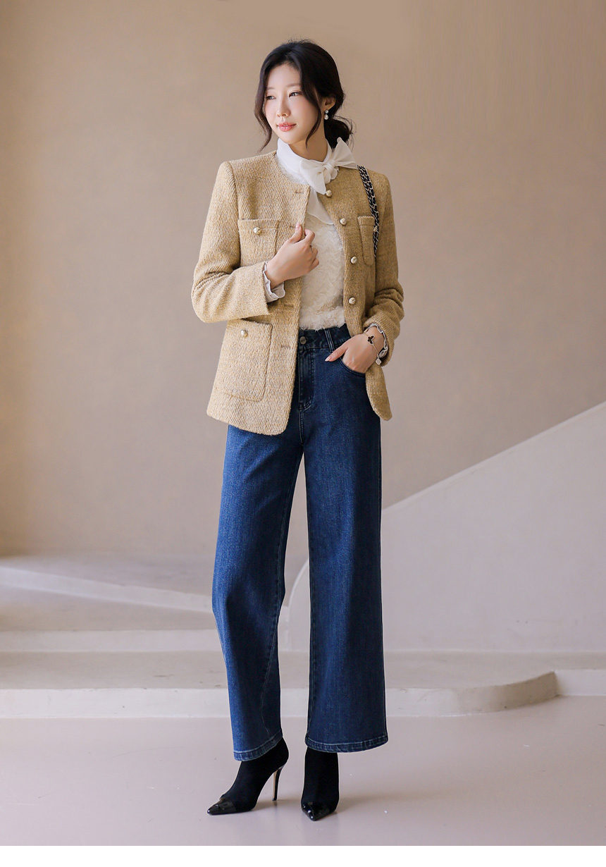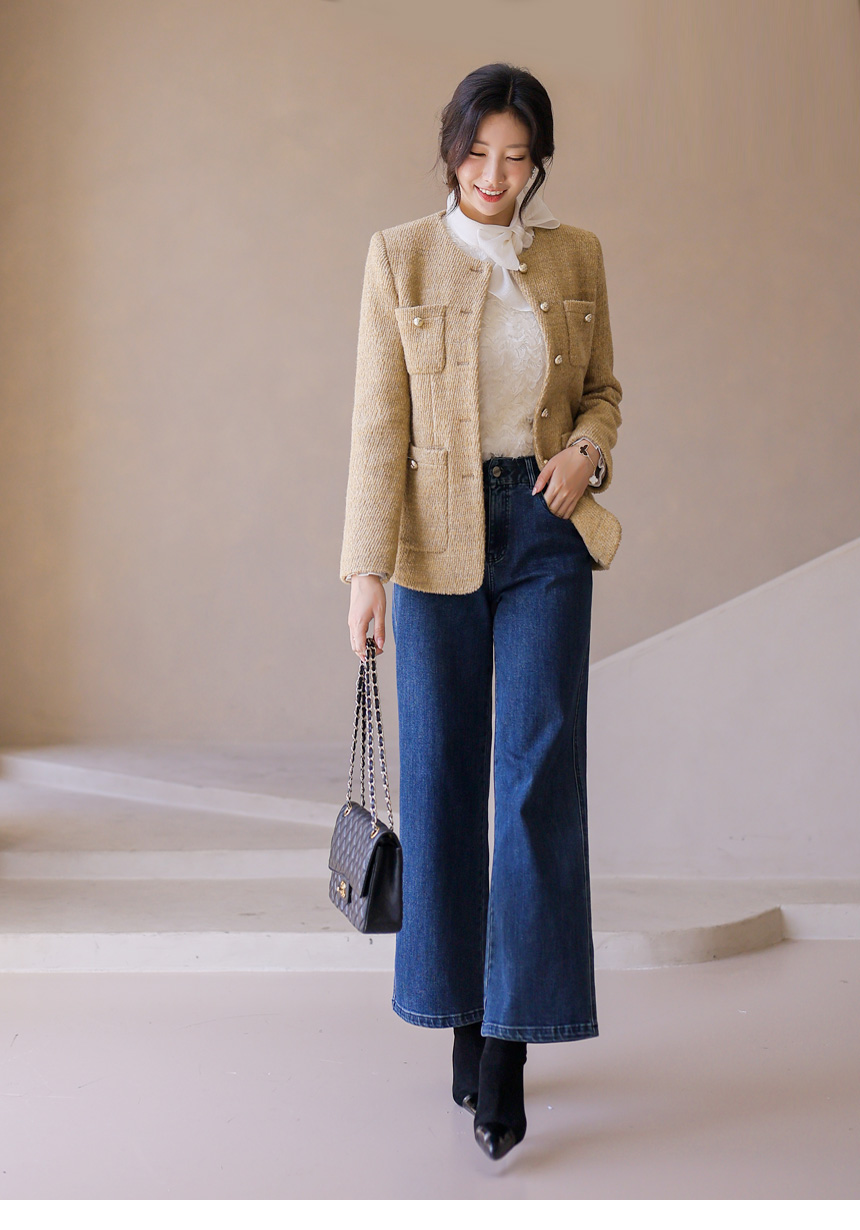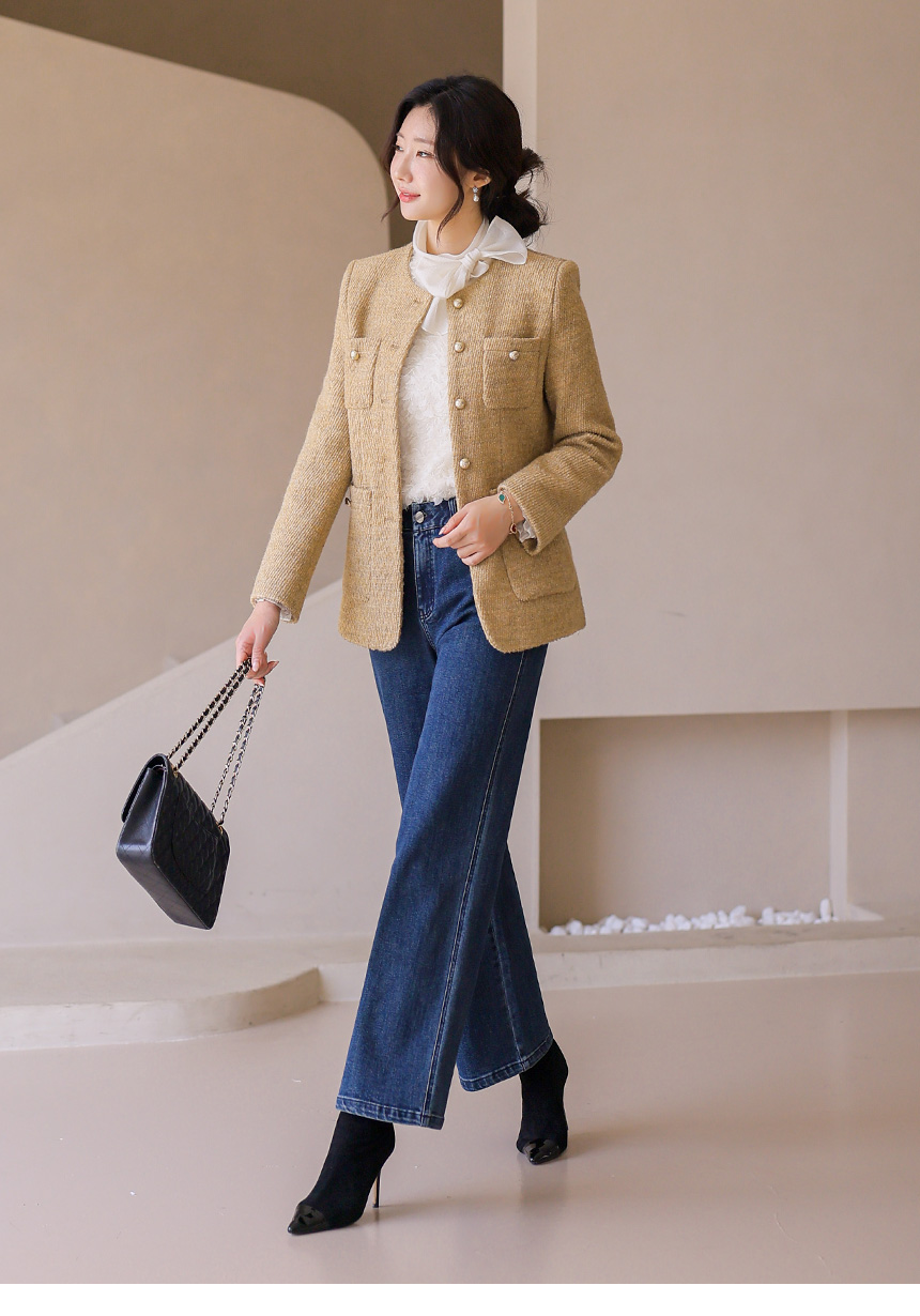 • ゴールドボタンミックスカラーノーカラーツイードジャケット jk42721