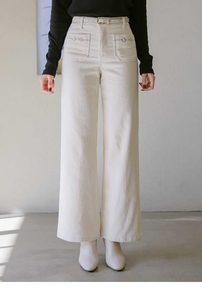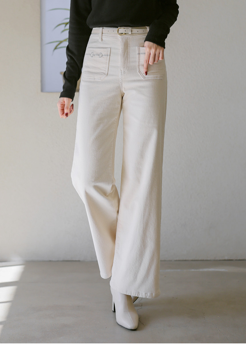 [THE ONME] チェーン刺繍フロントポケットコーデュロイワイドパンツ pt42856