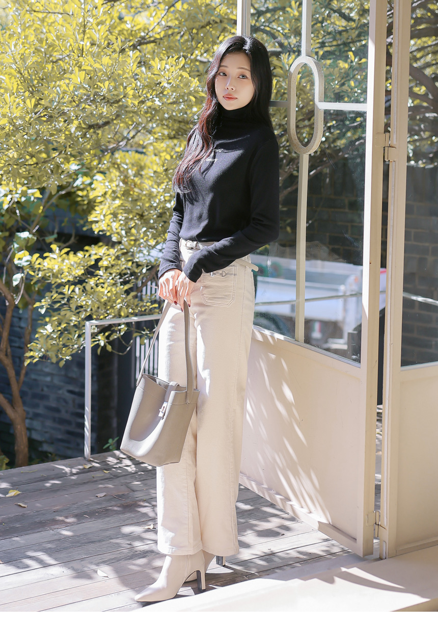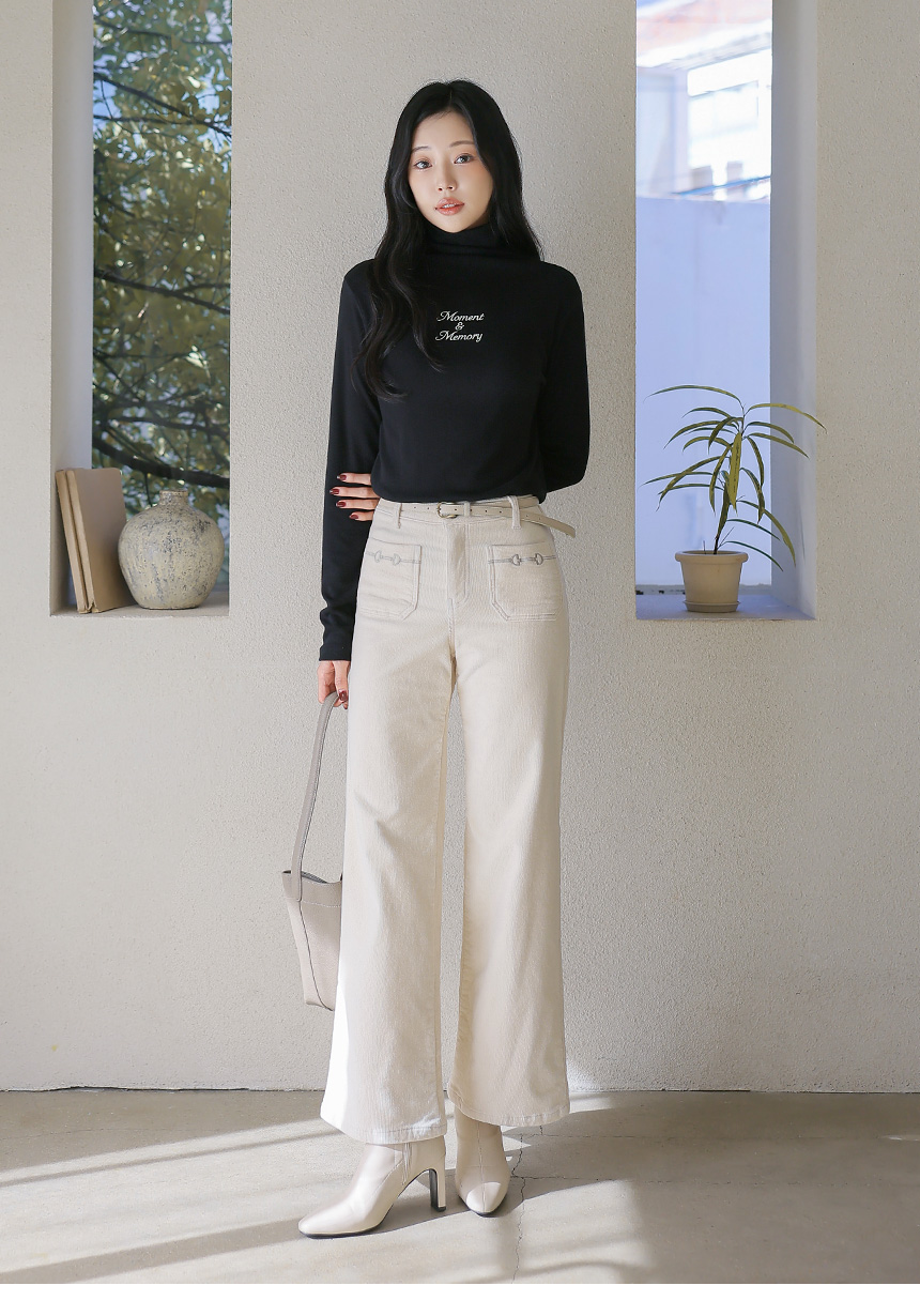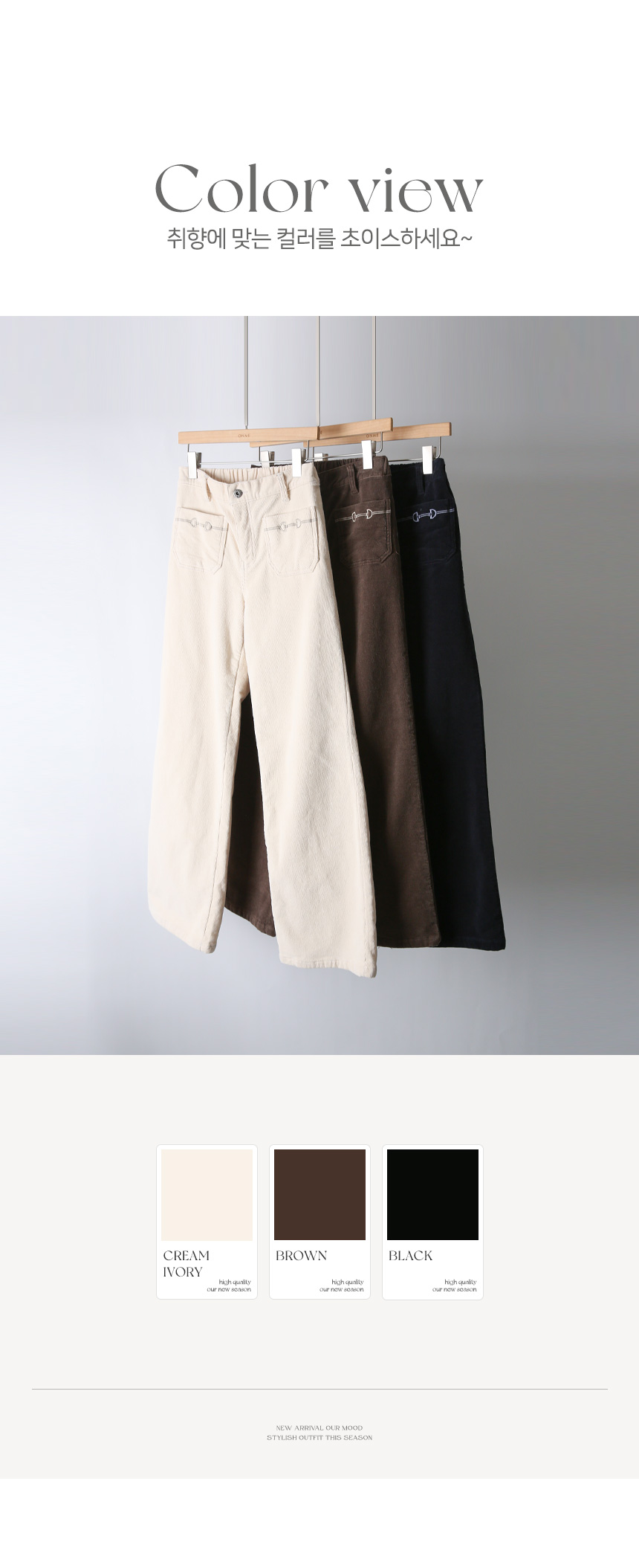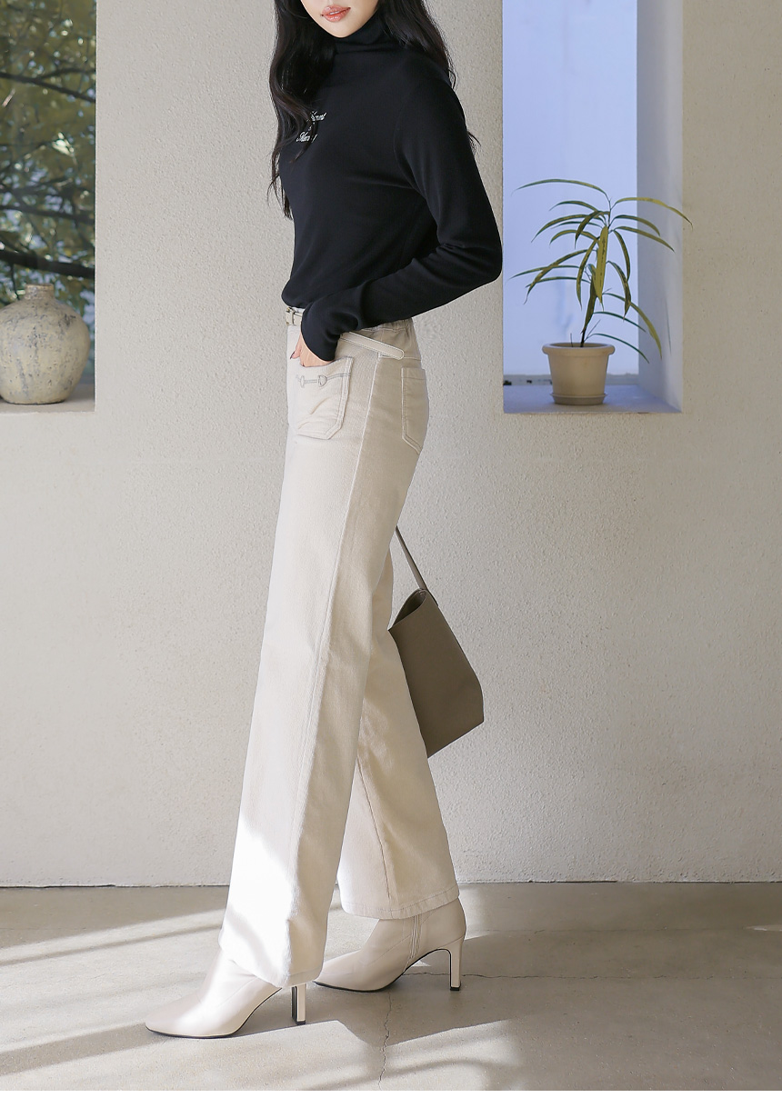 포켓 자수로 세련된 포인트를 준 세미와이드 팬츠에요 :)