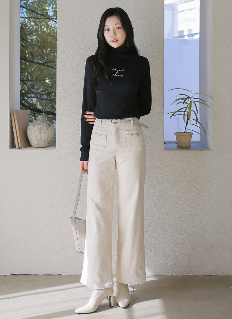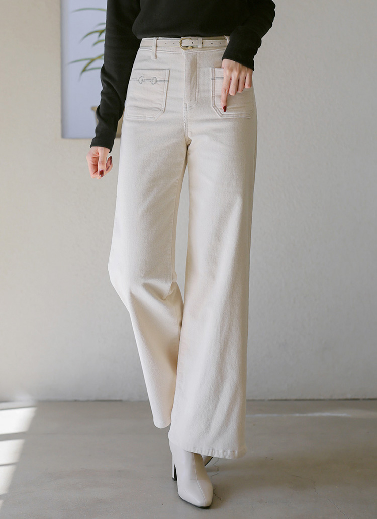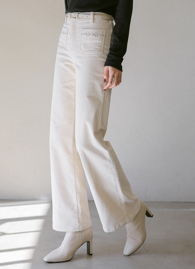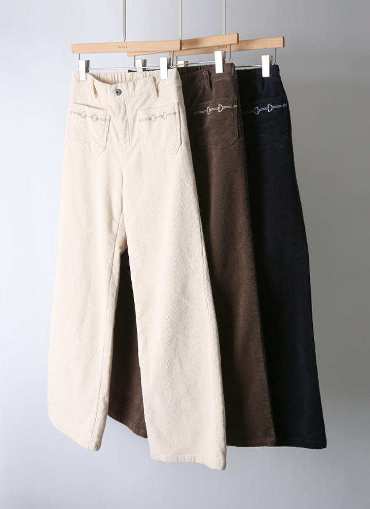 [THE ONME] チェーン刺繍フロントポケットコーデュロイワイドパンツ pt42856