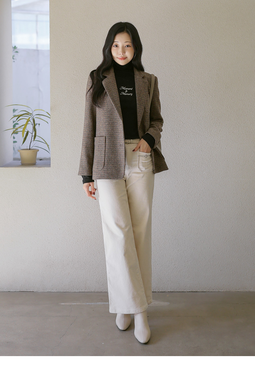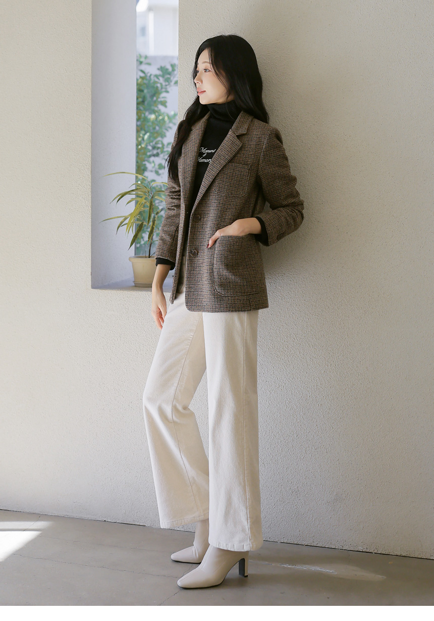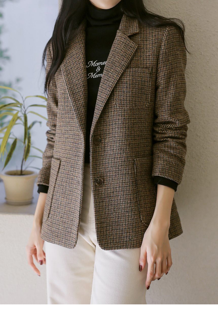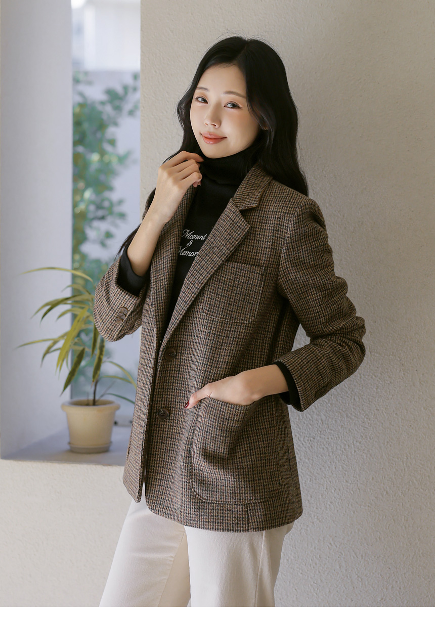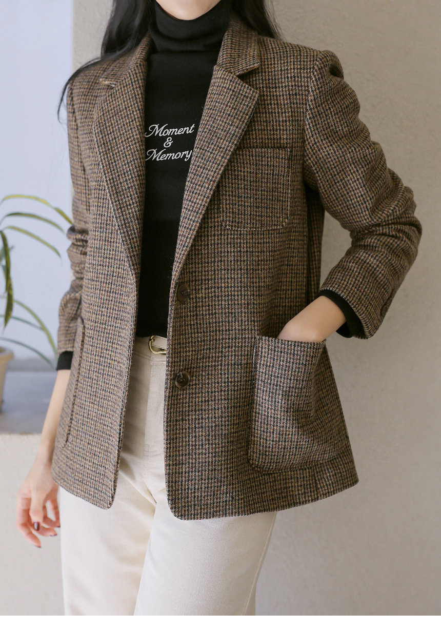 클래식한 글렌체크 패턴에 울 블렌딩으로