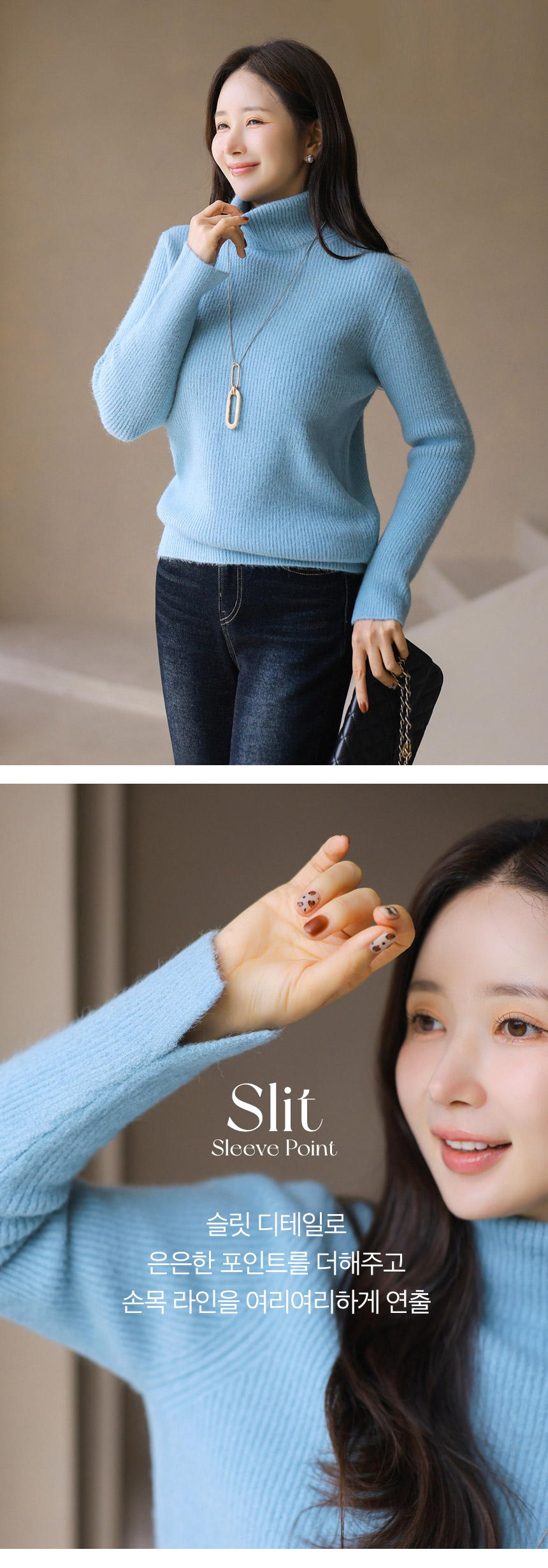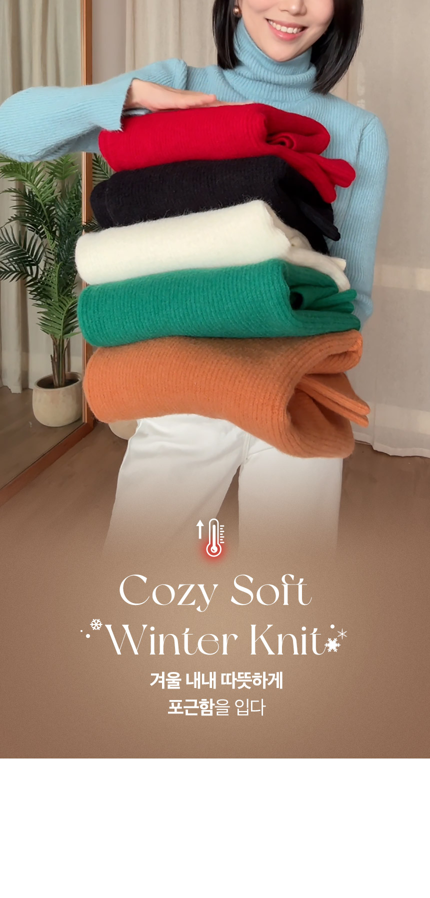 포근한 골지 폴라 니트로 따뜻하고 여유 있는 실루엣을 선사하는 아이템이에요 :)