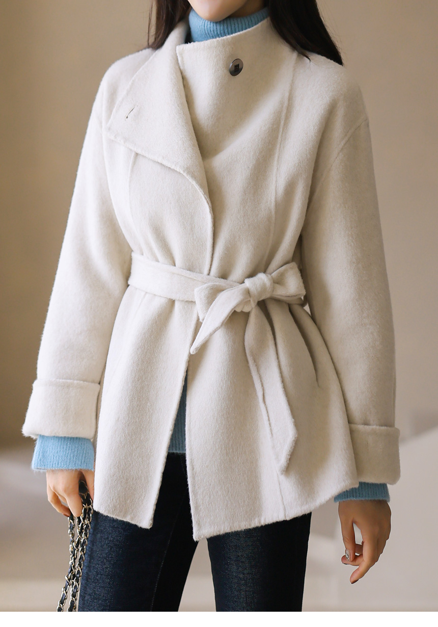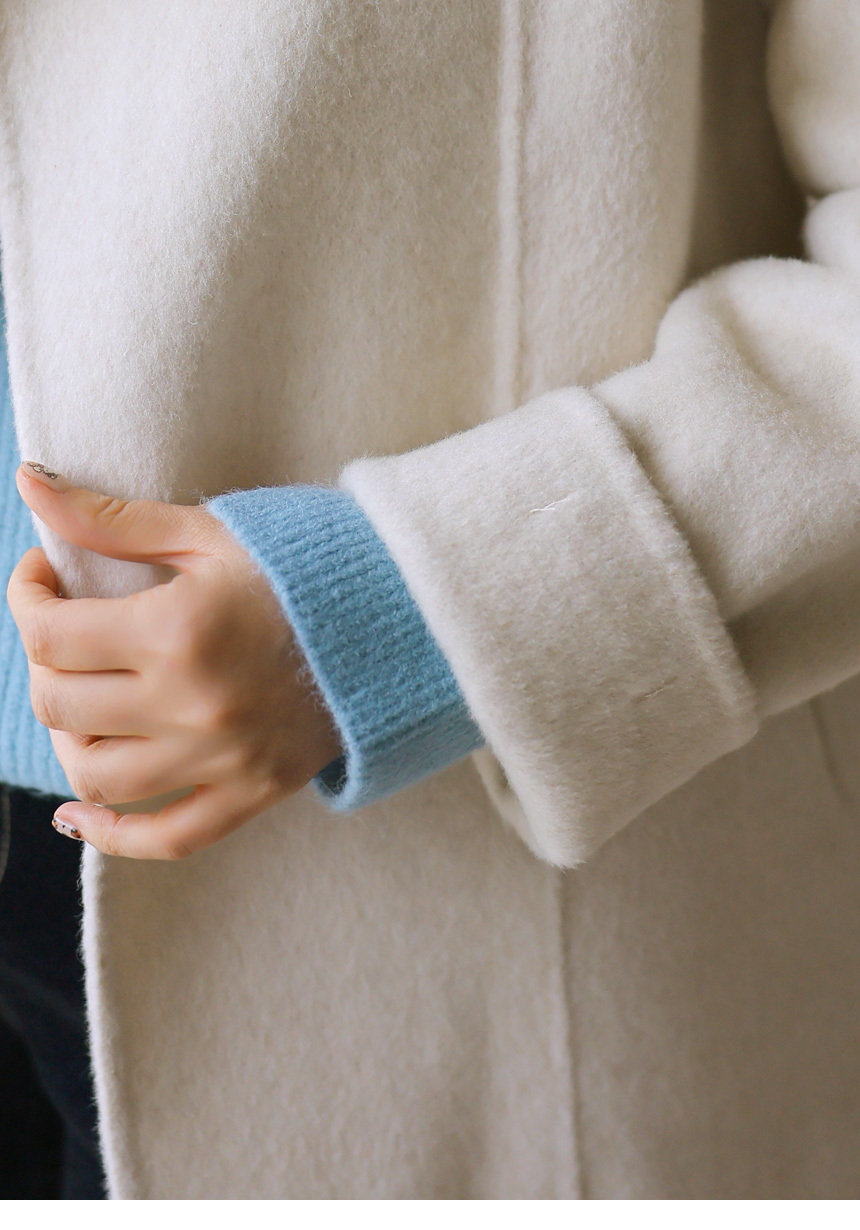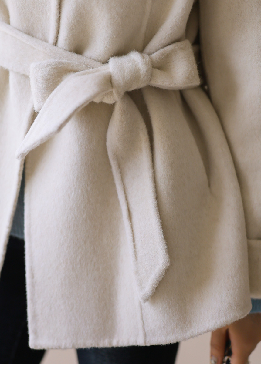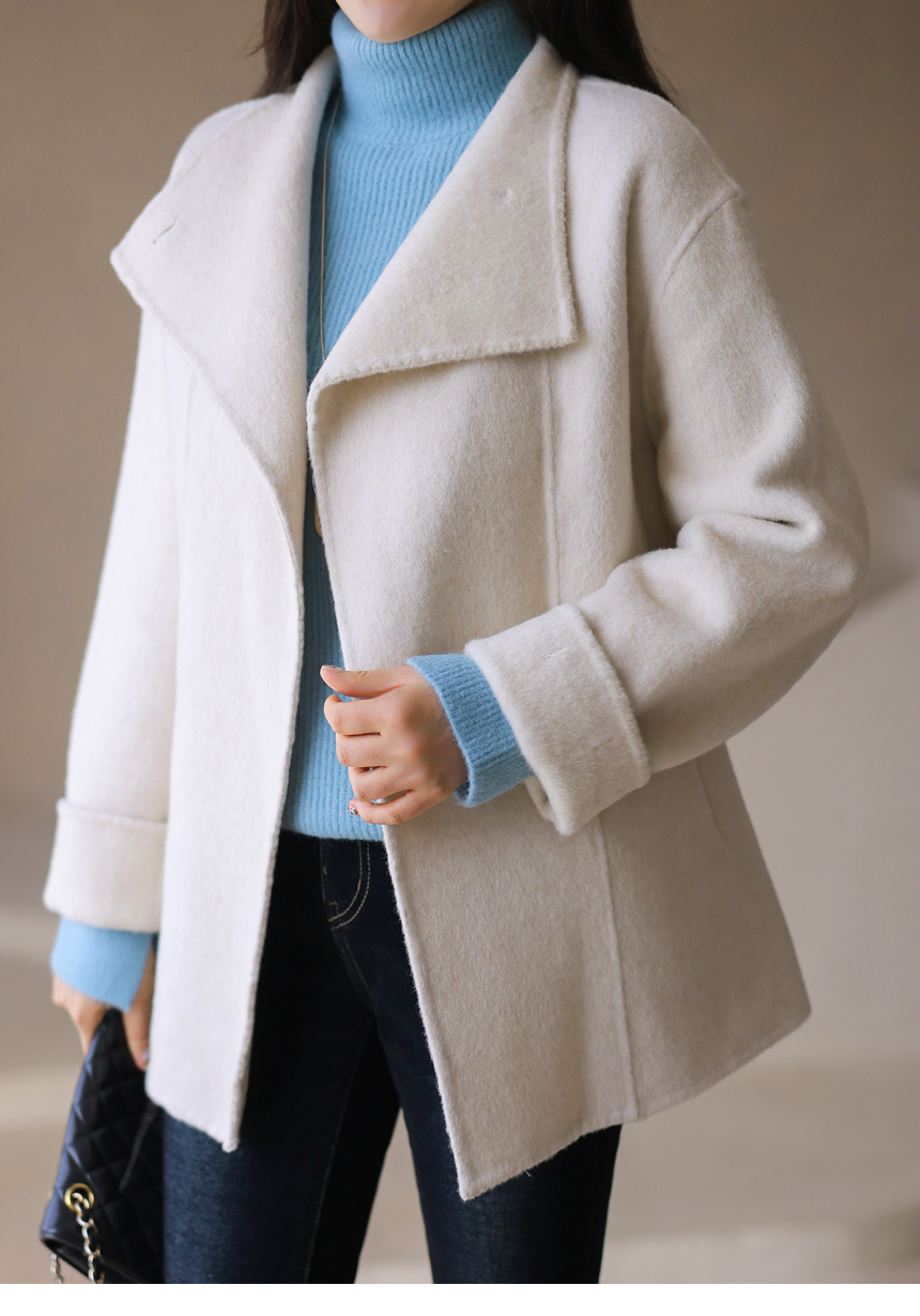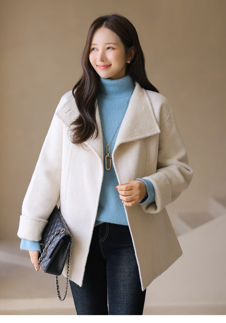 ウール80オープンカラーハンドメイドハーフコートct42865