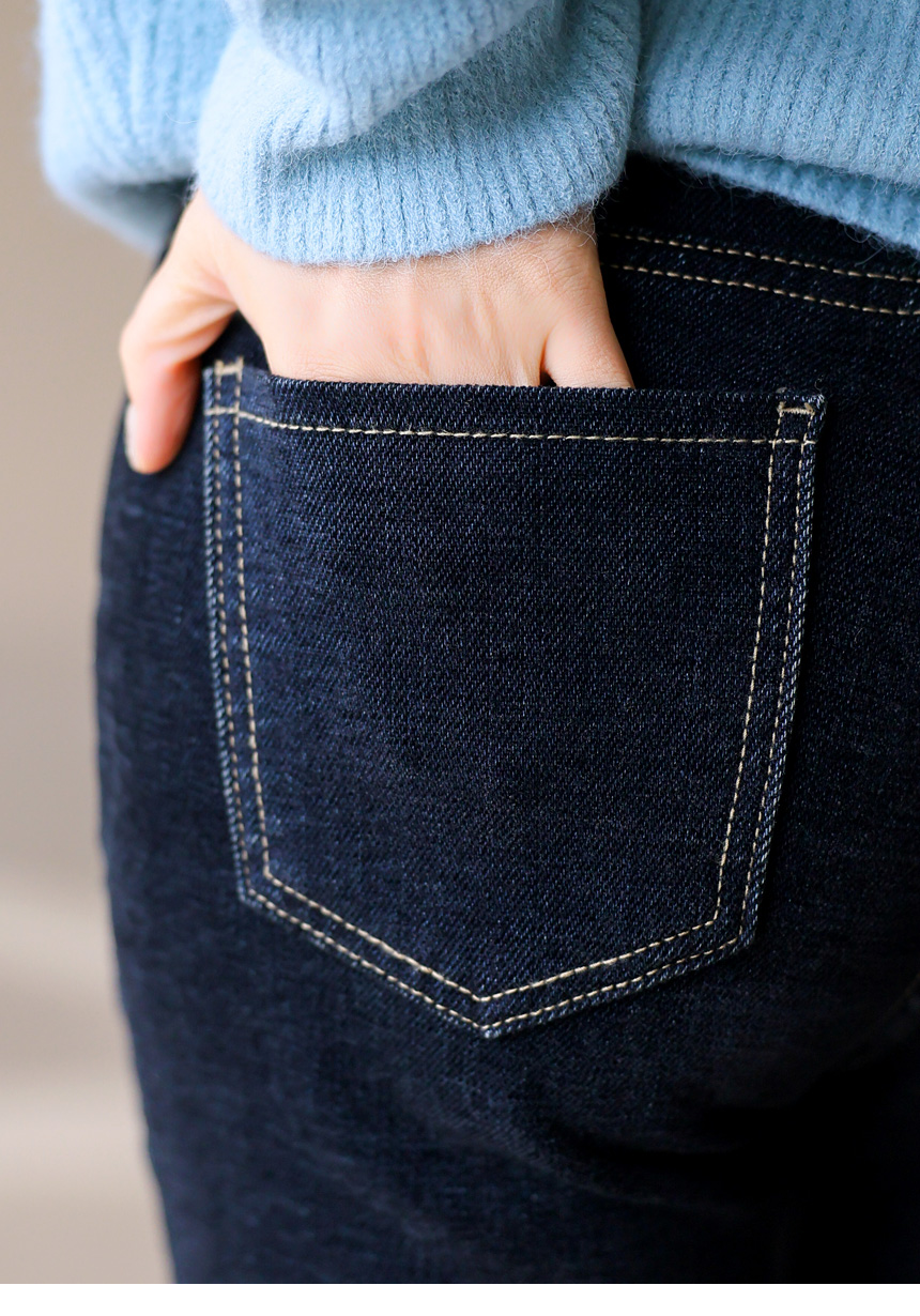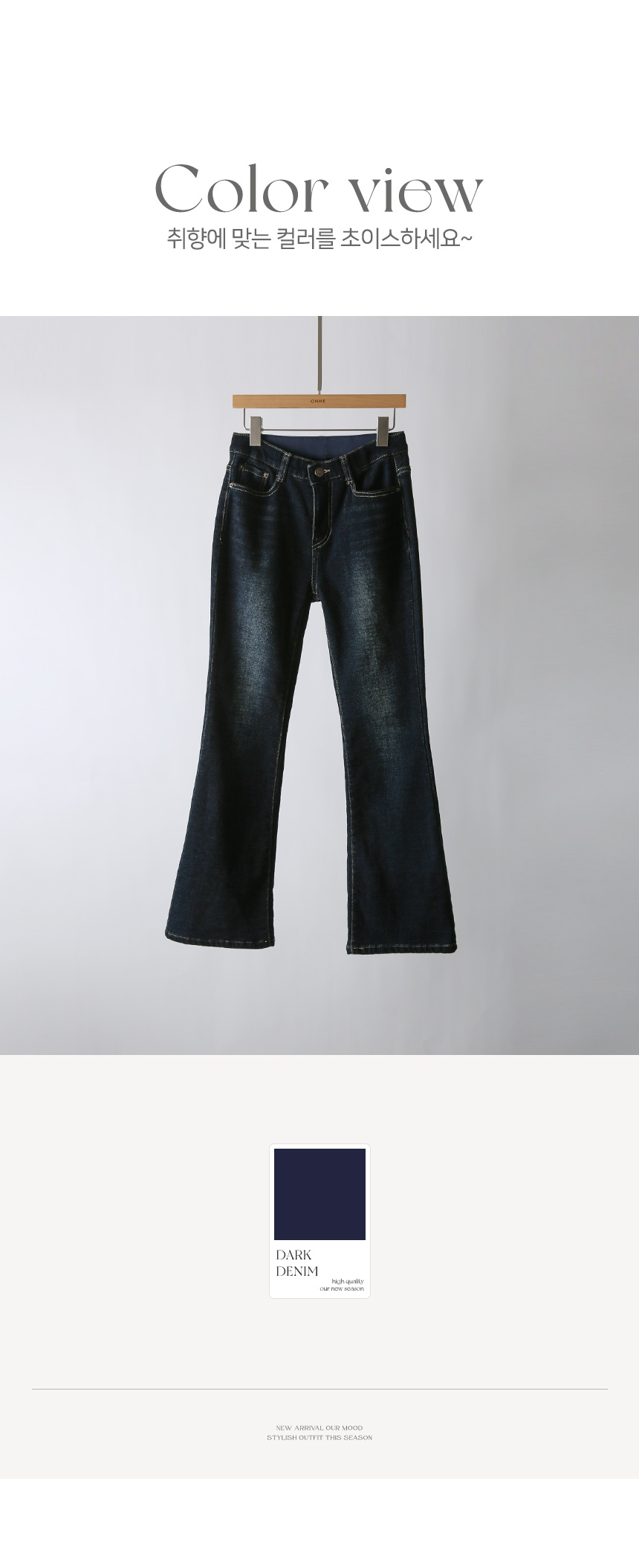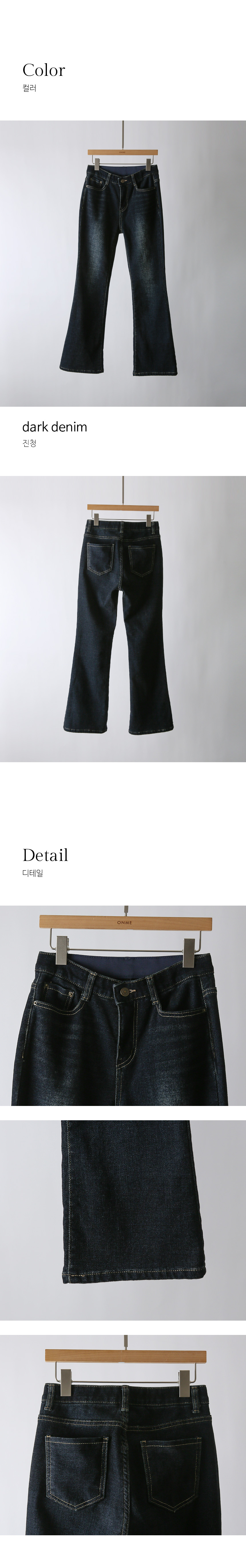 딥한 컬러톤과 은은한 워싱으로 슬림하고 길어 보이는 레그라인을 연출해주는 부츠컷 데님 팬츠에요 :)