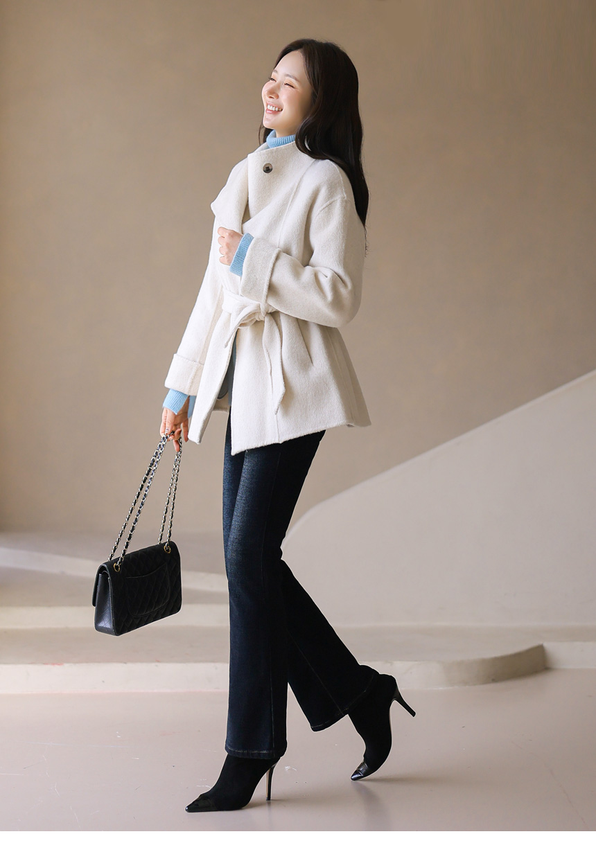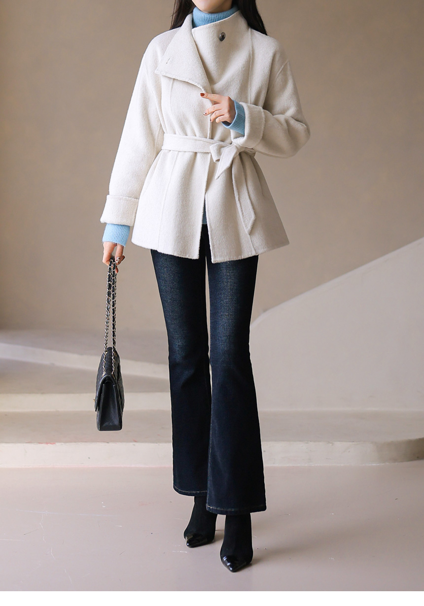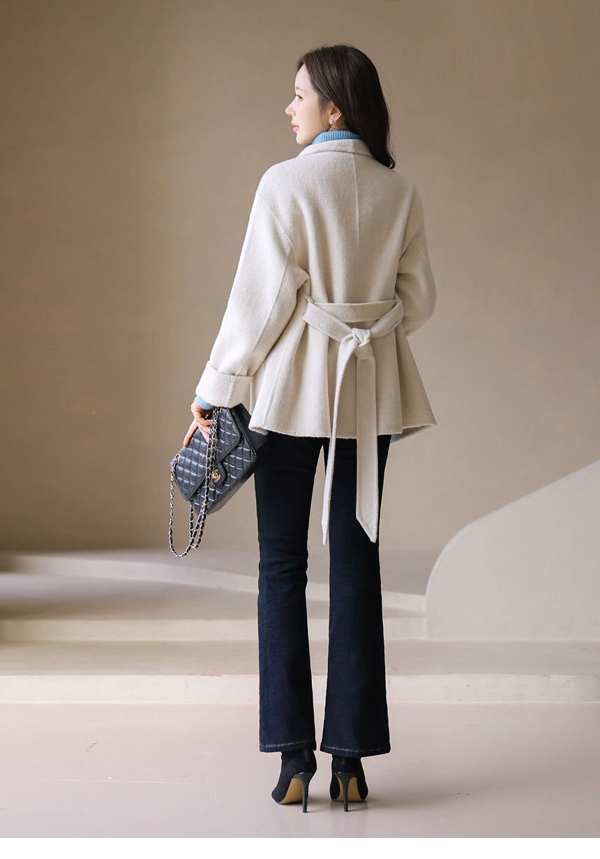 • ウール80オープンカラーハンドメイドハーフコートct42865