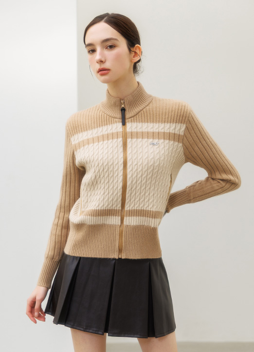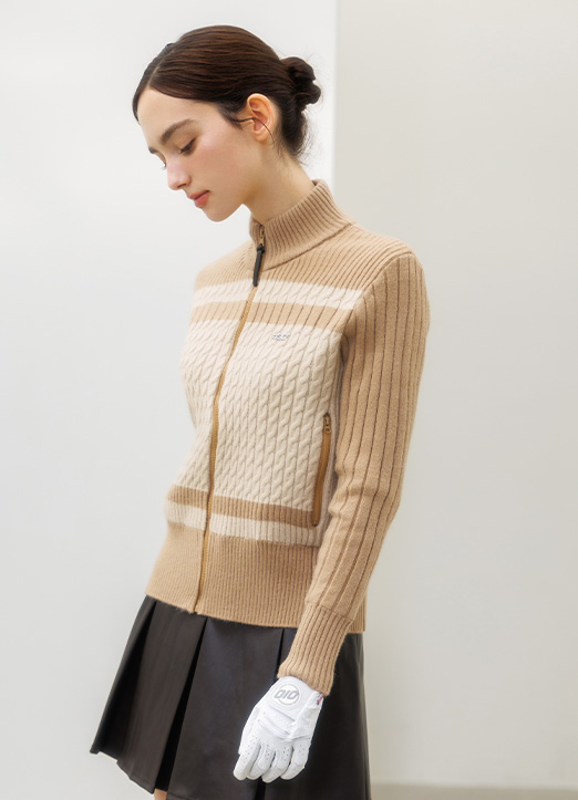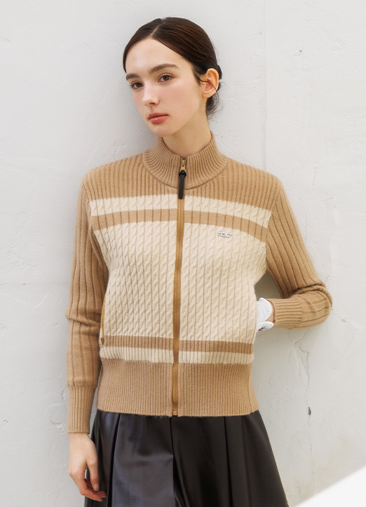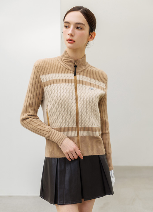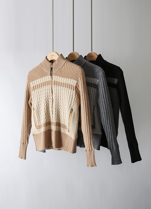【防風ニット】[QoG] バイカラーハイネックニットジップアップ cd42880