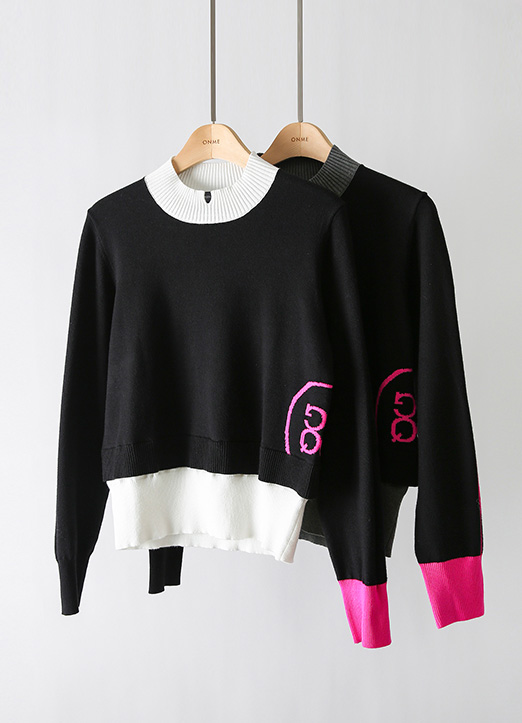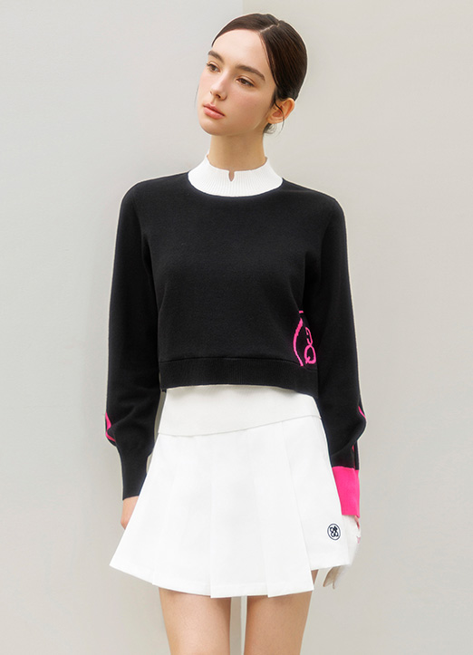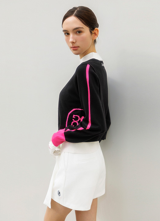 [QoG] 골프 배색 넥트임 플라워 니트_2color