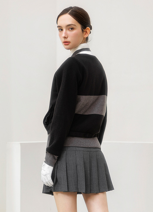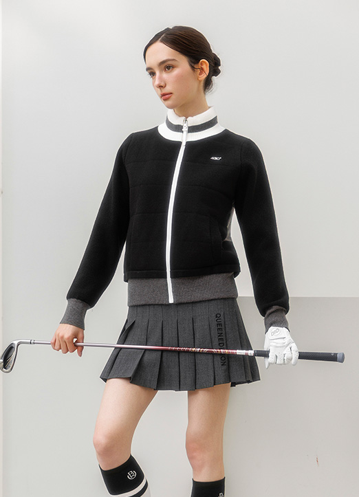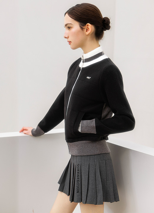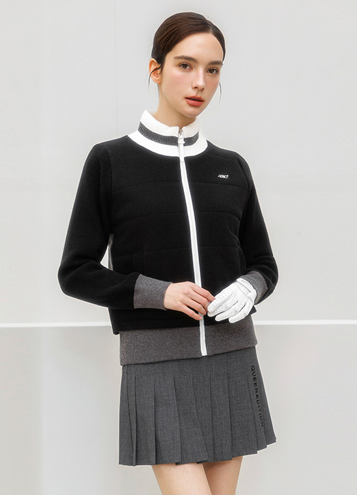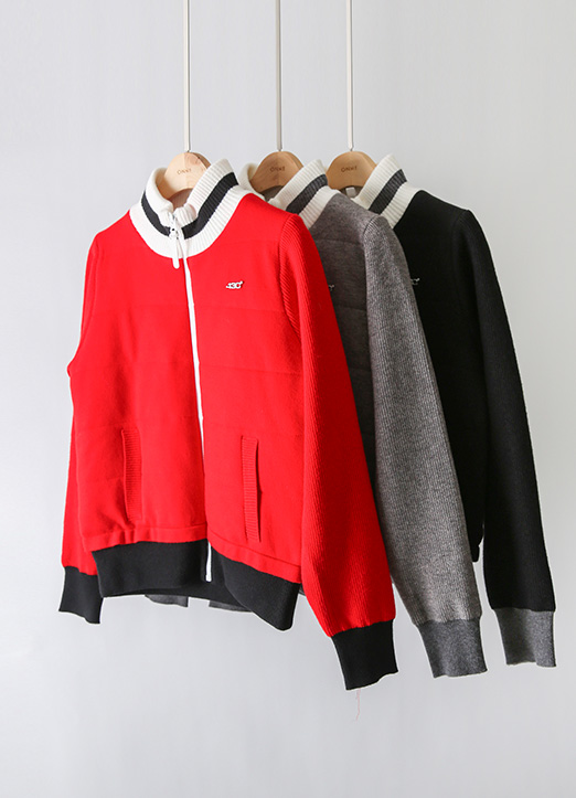 【防風ニット】[QoG] 配色ハイネックジップアップジャケット jp42889