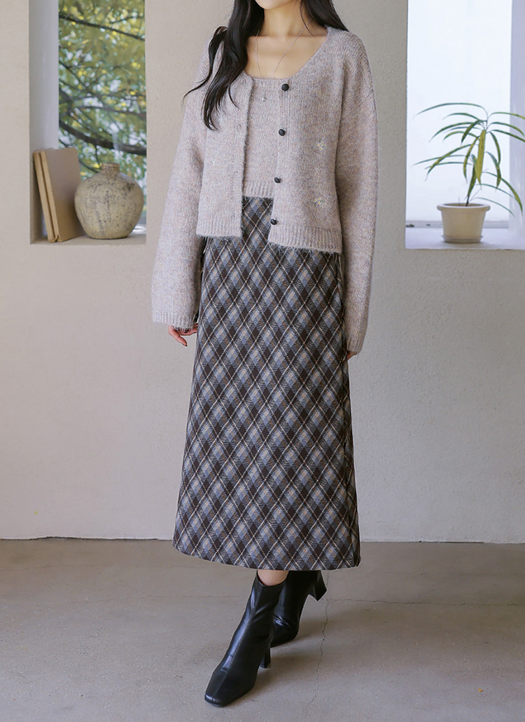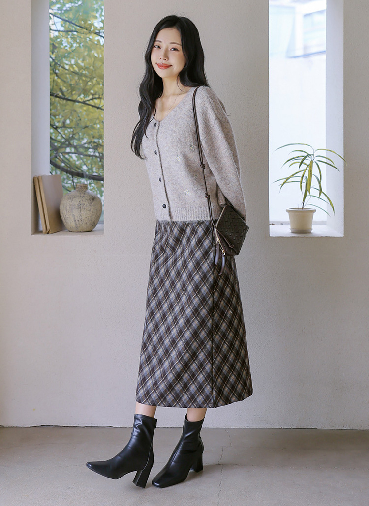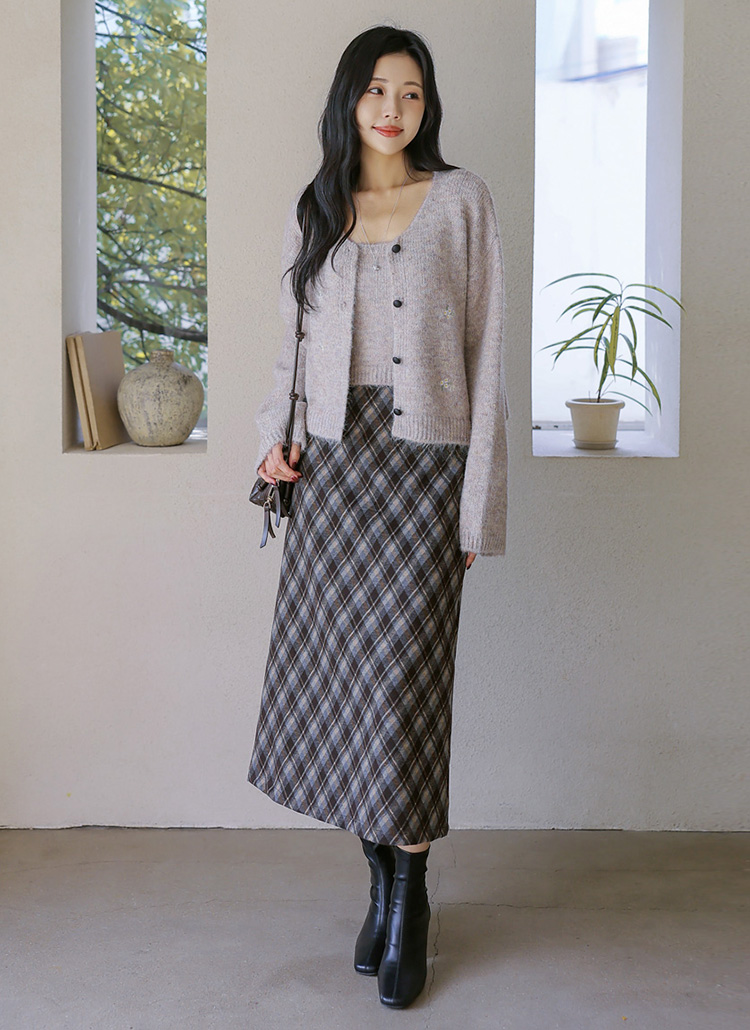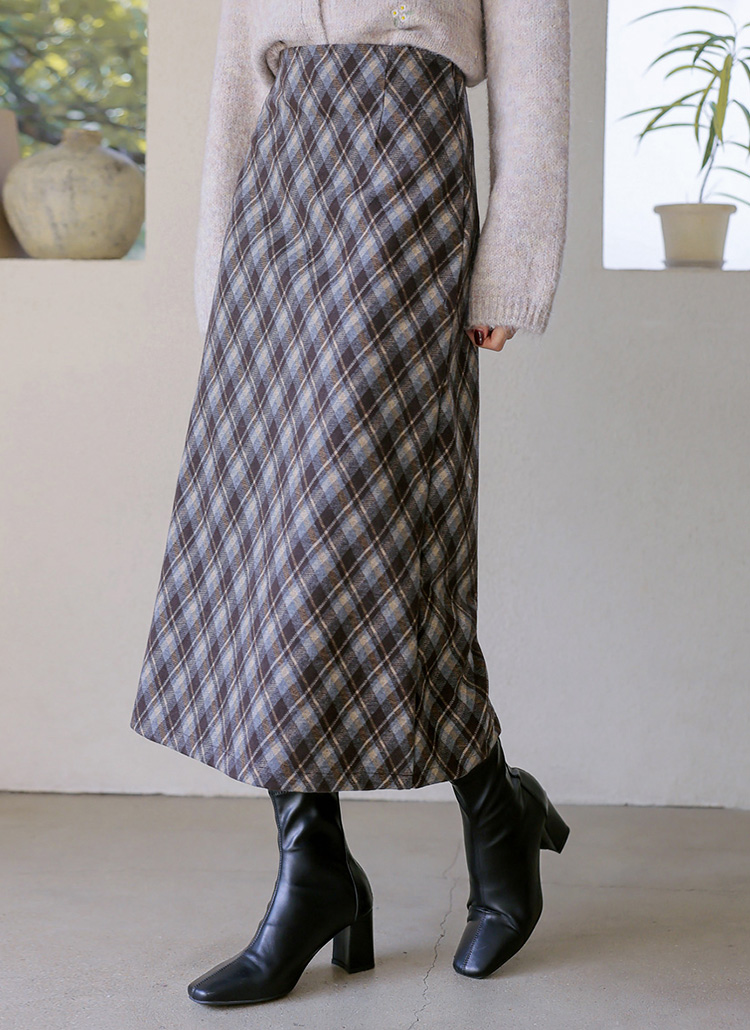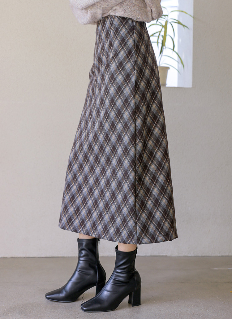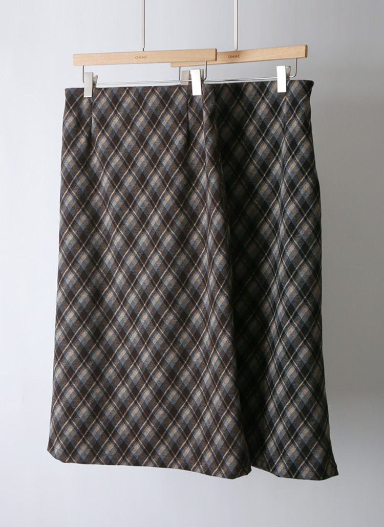 [Theonme] 로테인 아가일 체크 A라인 롱 스커트