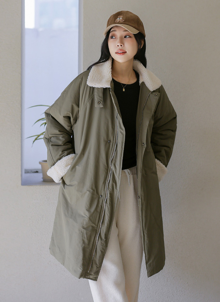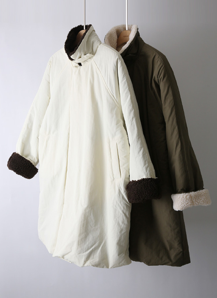 [Theonme] ボアファー付き中綿ロングコート jp42913