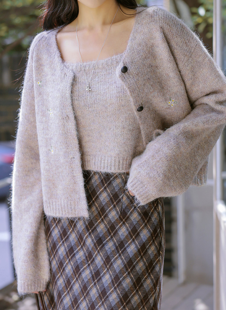 [THE ONME] フラワー刺繡ニットキャミソール&カーディガン SET42916