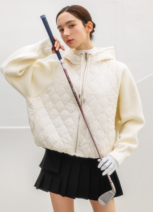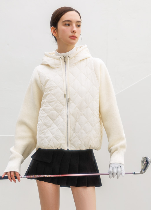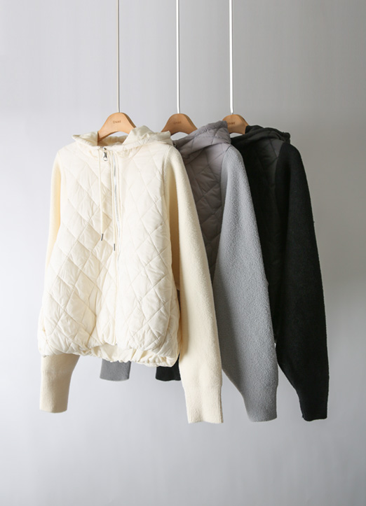 [QoG] ニットスリーブドッキング キルティングフードジャケット jp42922