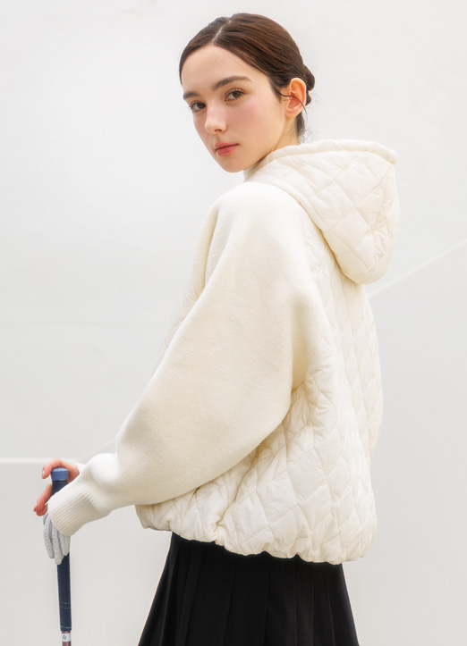 [QoG] ニットスリーブドッキング キルティングフードジャケット jp42922