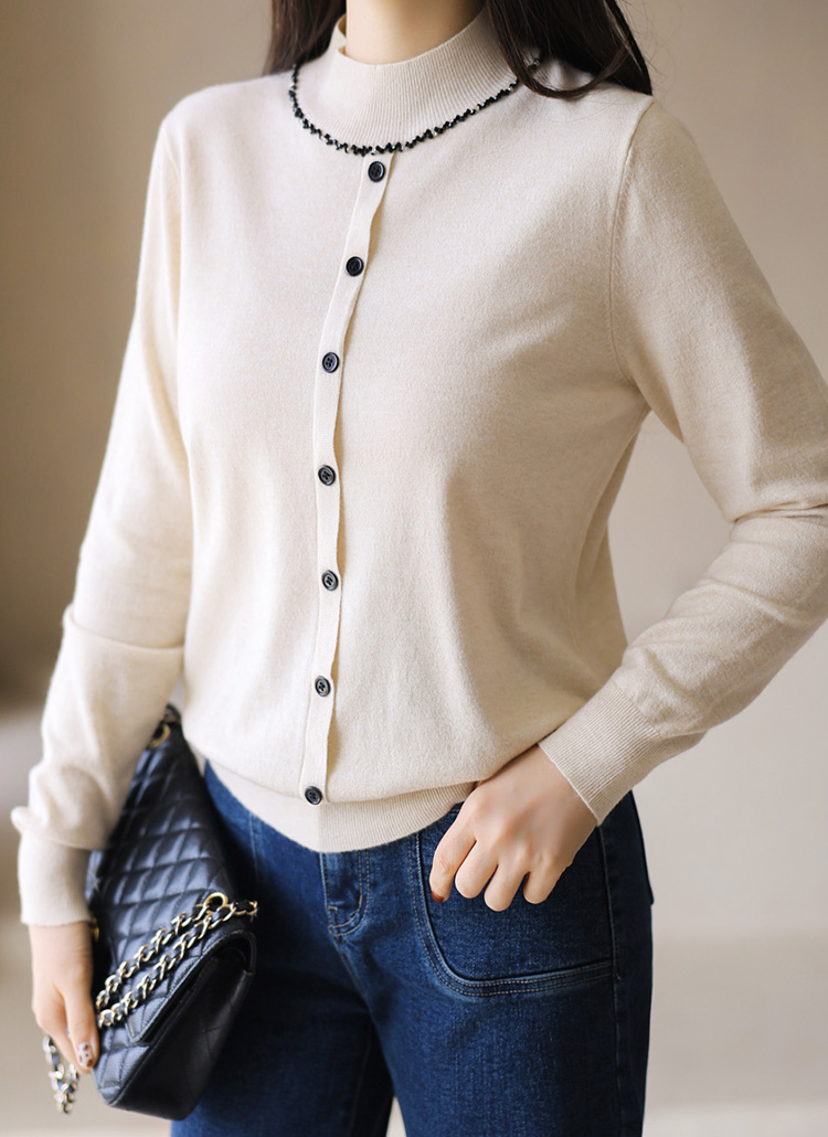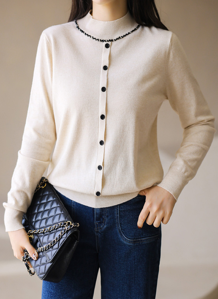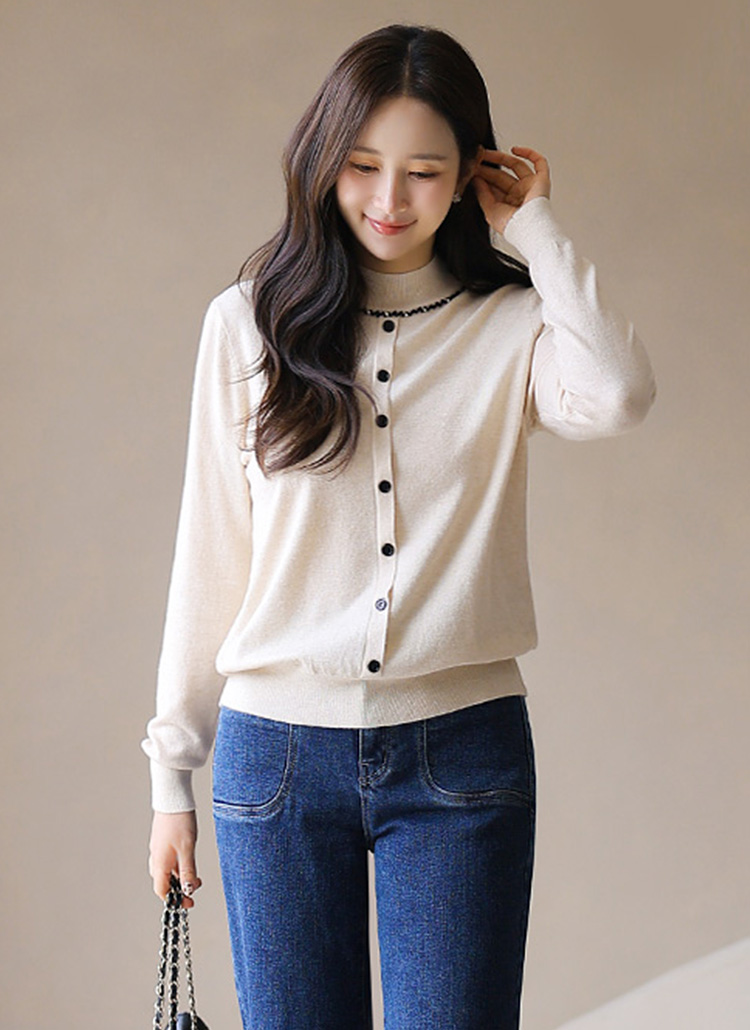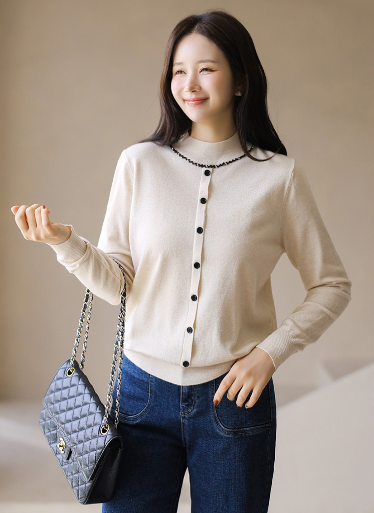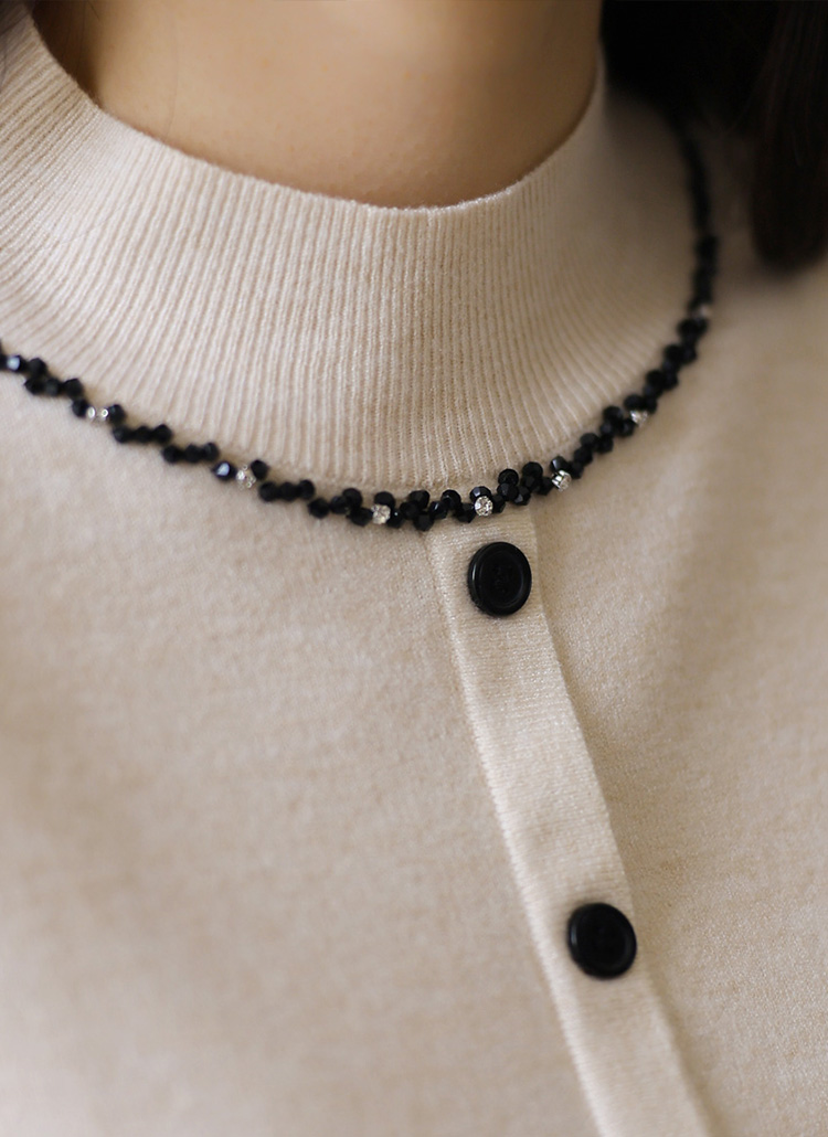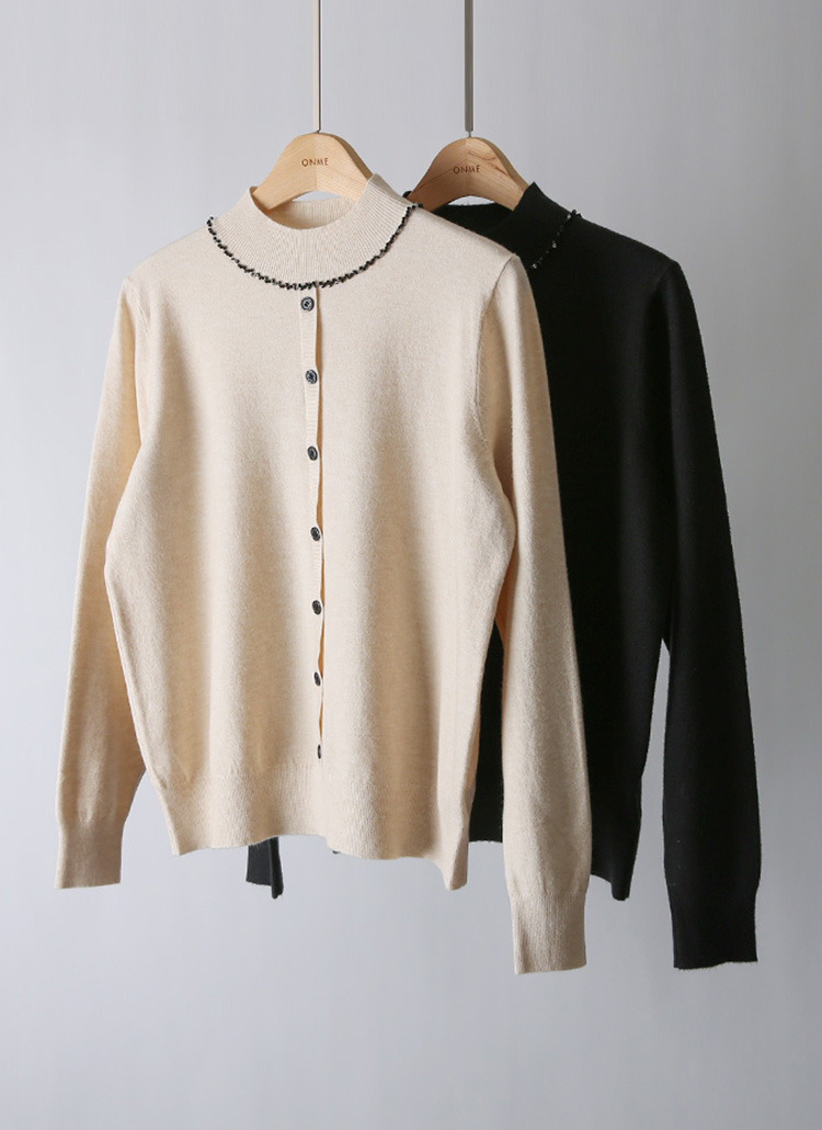 은은한 큐빅 비즈 라인으로 네클리스를 한 듯 화사함을 더하는 반하이넥 니트에요 :)